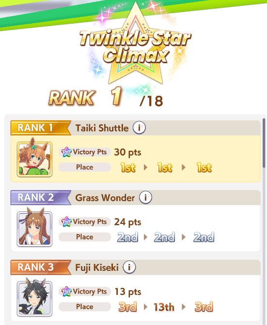 Finally done with my TT. 14/15 umas from MANT, except for my Aoharu Urara.