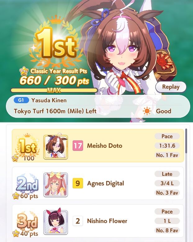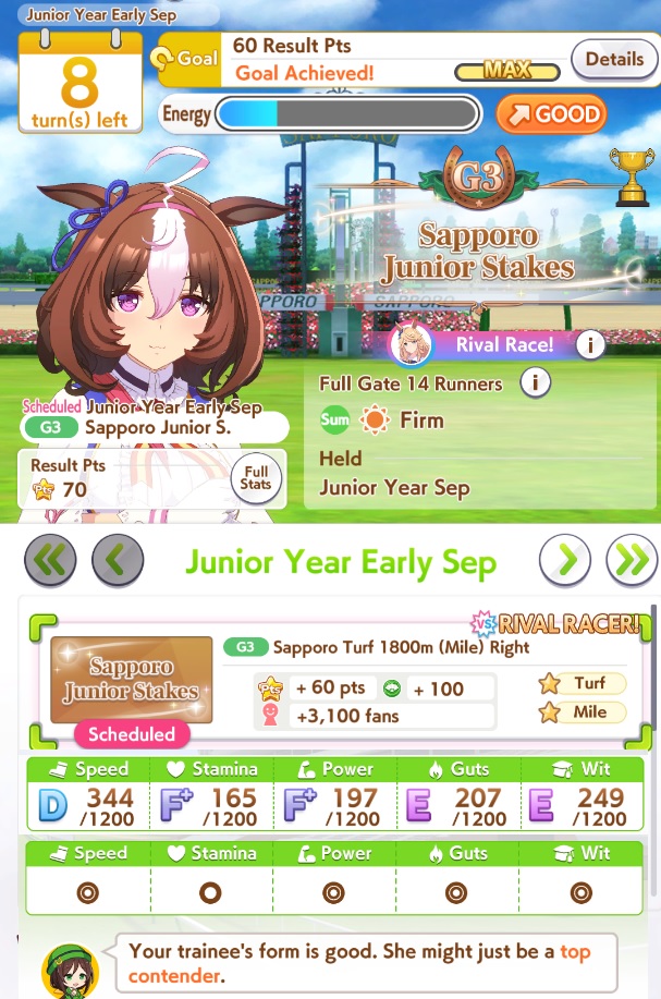 Doto is forced to be Mile B due to her affinity.Would you race her? Second rival race in the run.
