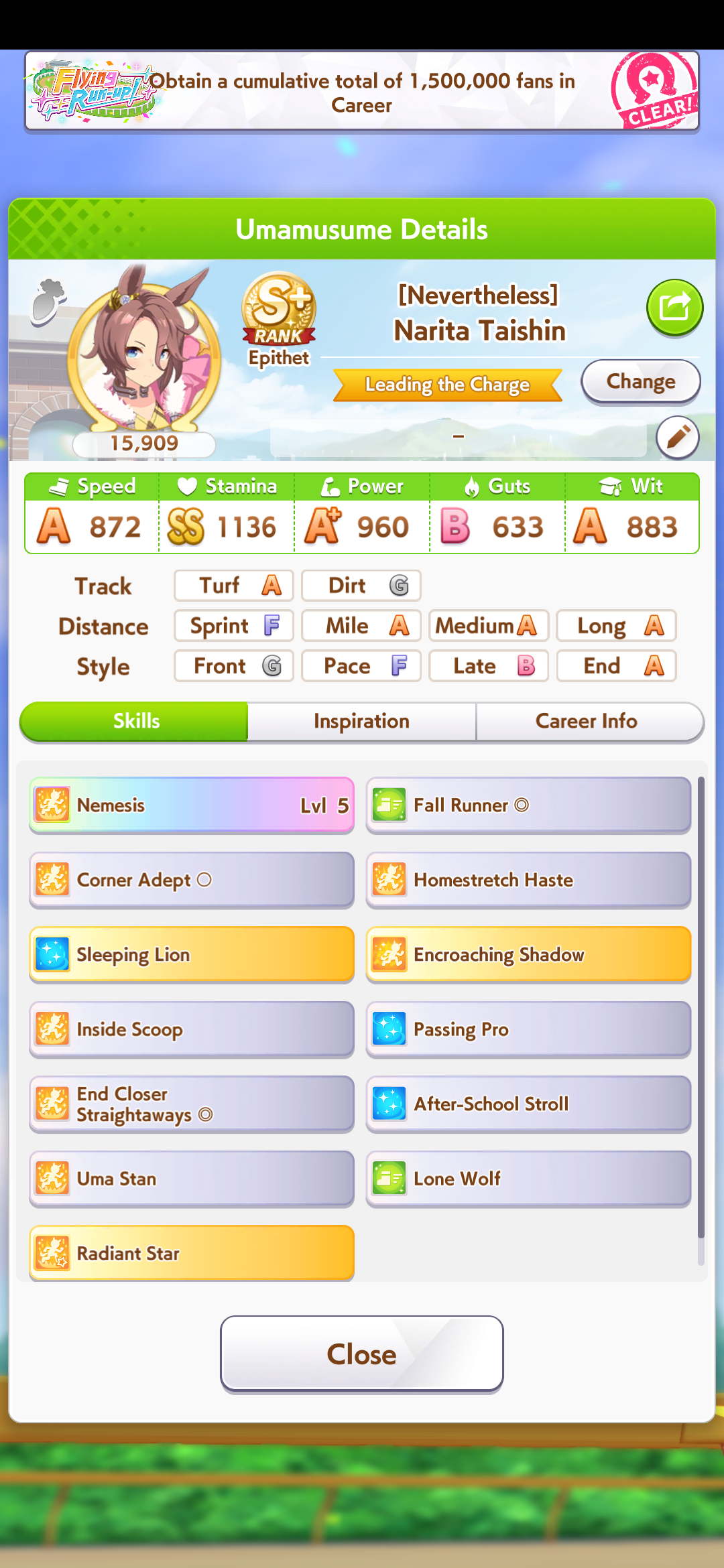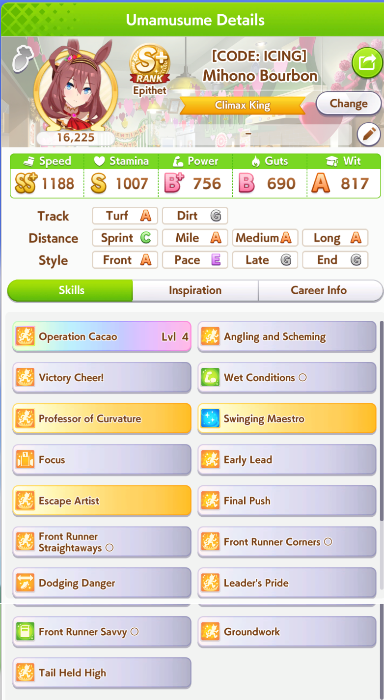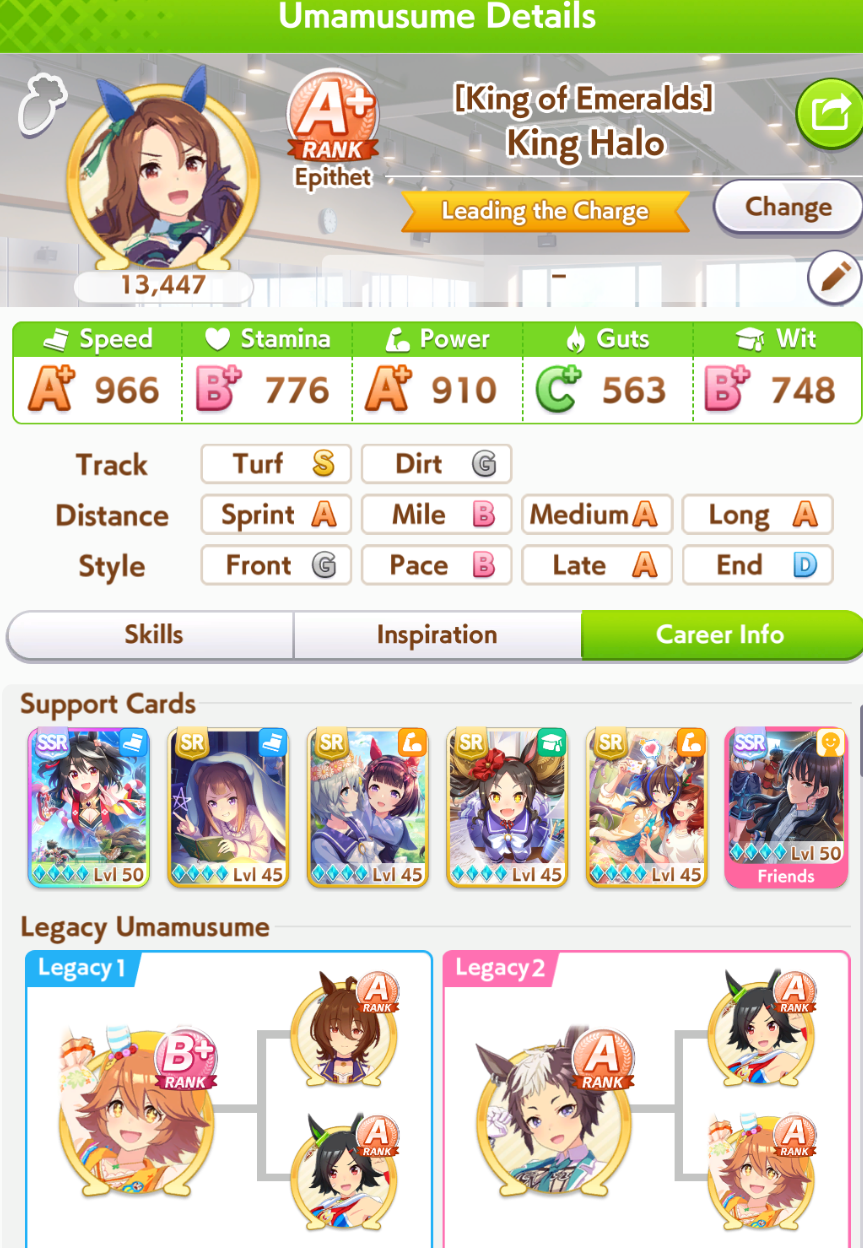 Once I get the final uncap of fine from the free selector I will surely start making S+ umas!