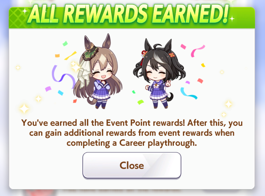 That WHORE Super Creek didn't finish her event chain and neither did Seiun Sky for Escape Artist but I think I'm slowly getting it