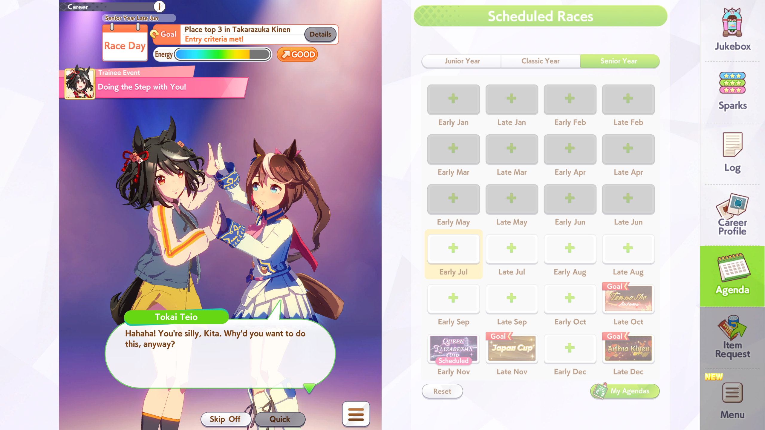 Imagine this scenario, torena-san.You have:>Rich Hand Cream>Vita 20>You just raced NHK Mile Cup and DahbyWill you race Yasuda Kinen classic into Takarazuka Kinen or play it safe?