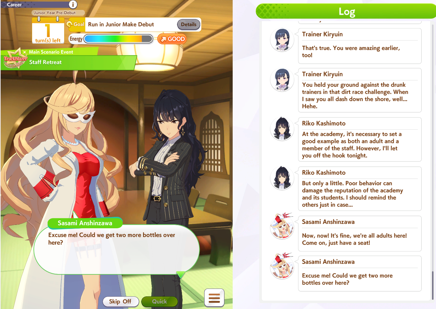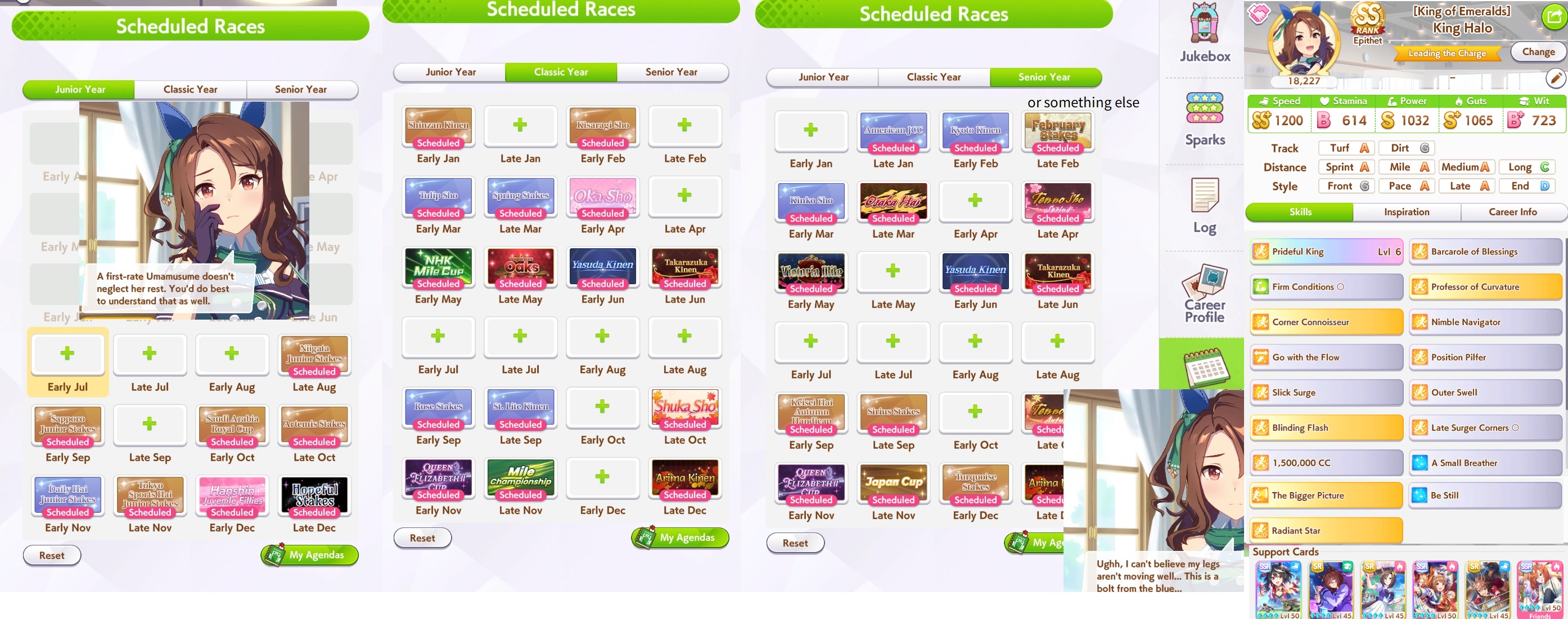 >>560312132Classic Yasuda risks 3 races in a row for no real reason, afaik any eptheths you can get from senior Yasuda. You want to prep energy for summer anyway unless you've highrolled energy items.