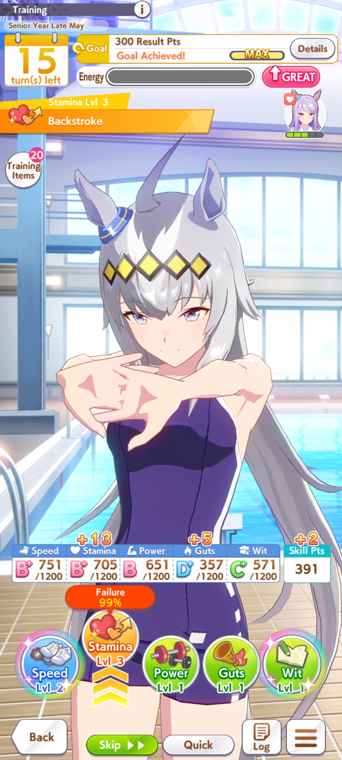 >>560320257Playing it like URA with items (ie level up your facilities) still shits out an S uma. It's what I did for Bakushin because fuck that.