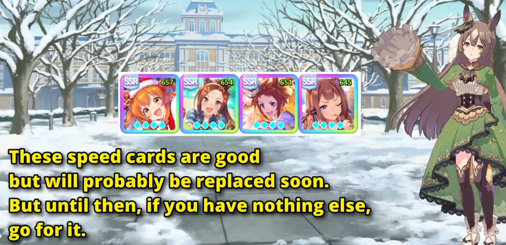 >>560311789Should I use Biko or spd Maya instead for kita then? I got screwed over a lot of times with the fuku card just refusing to proc rainbows especially during summer training and I only have the windy spd card paired with it