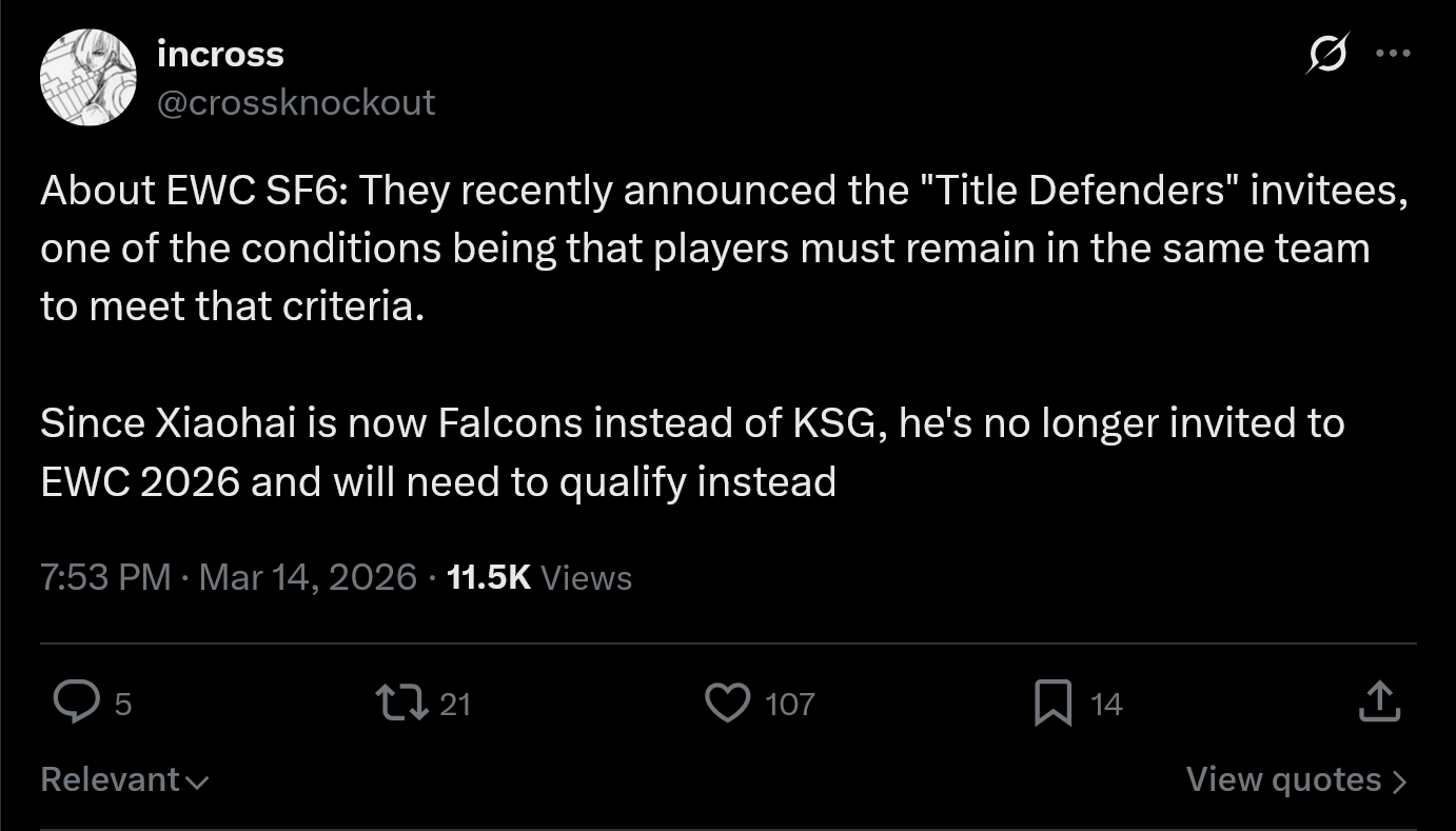 Xiaohai is apparently no longer qualified for EWC despite being the champion?That's fucking RETARDED.Whoops I posted in the wrong thread before.