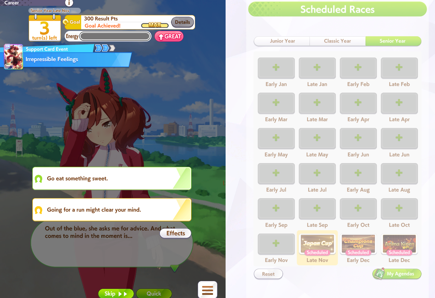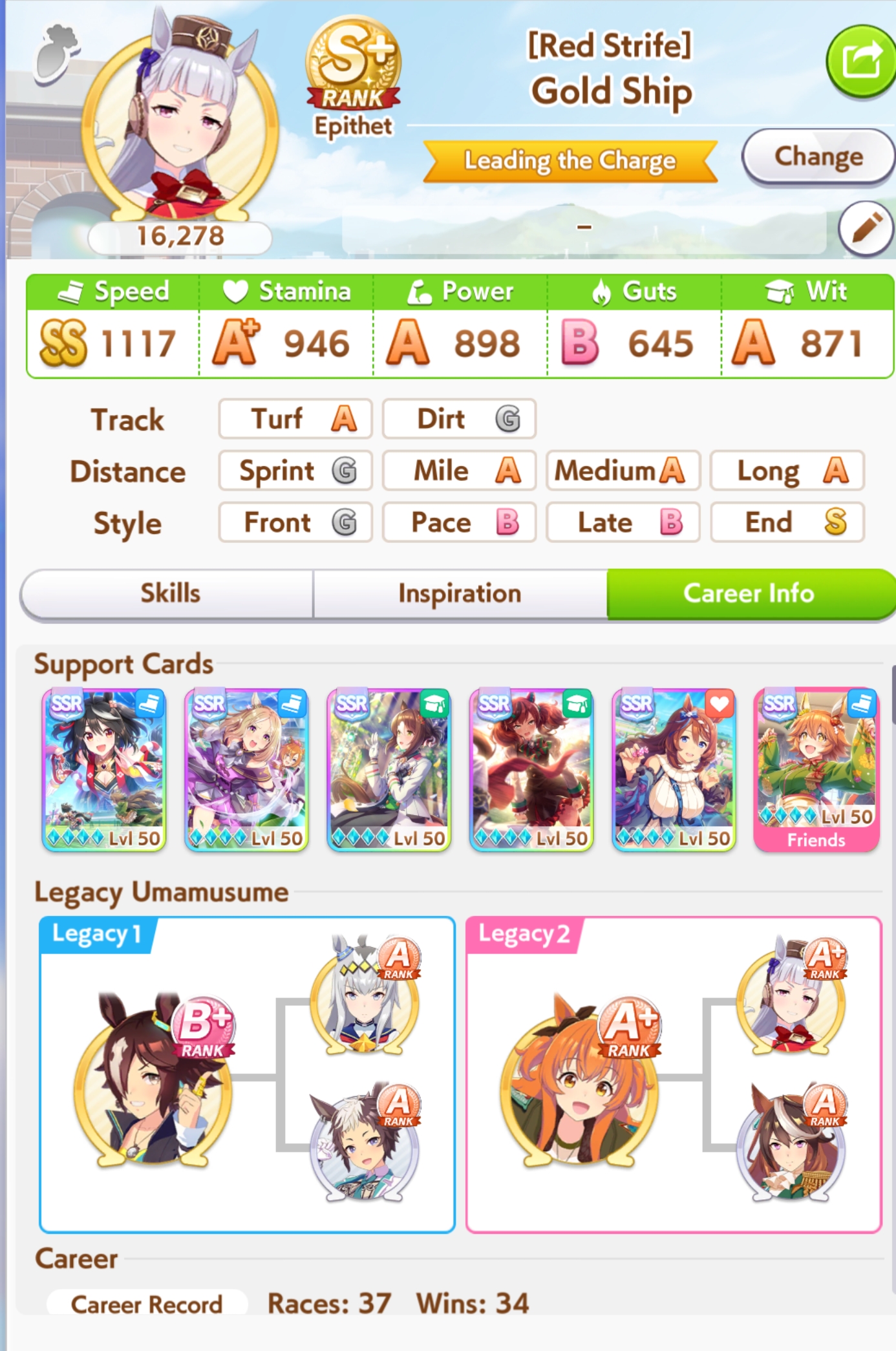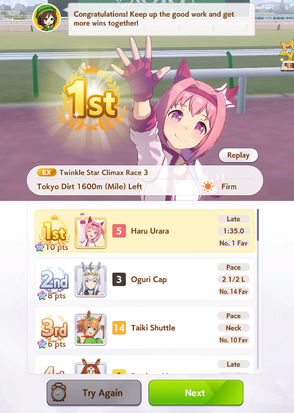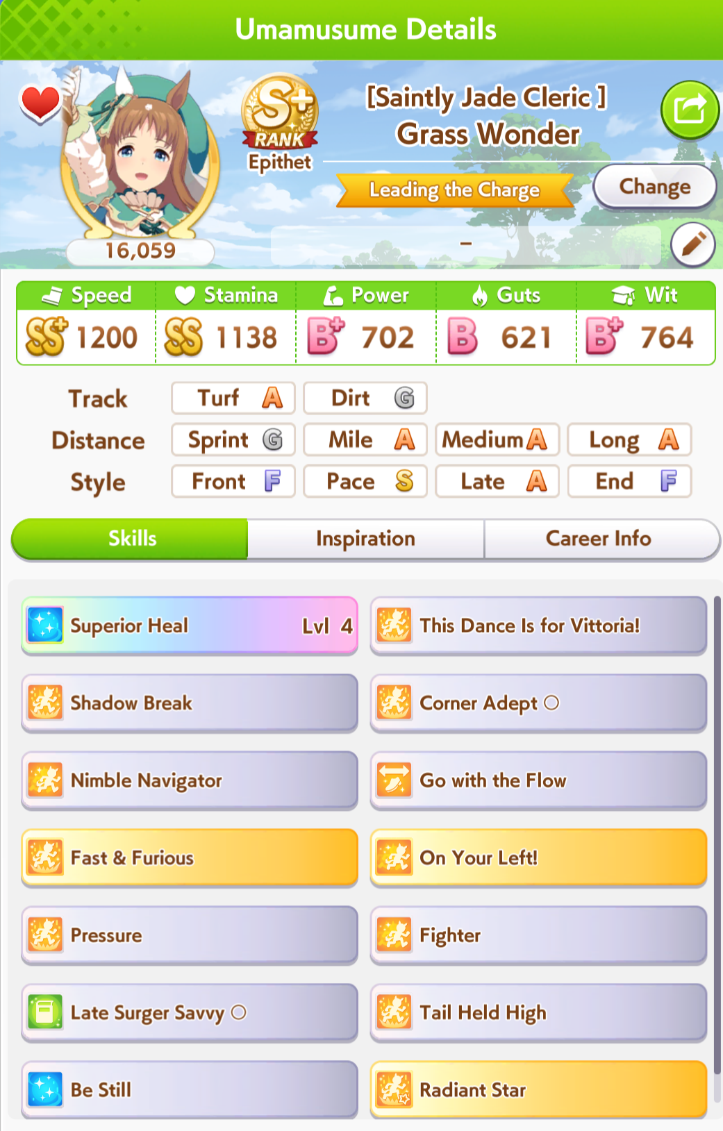 >spent all my clocks on takarazuka fucking kinen>still lose a few more g1s in senior year>speed and power not capped>awful run overall>S+ rank.I swear to god I had Unity careers where the whole runs felt like highrolls infused with dopamine and then end up with a subpar 12k A+ rank, it's incredible how MANT is the inverse of that if you know how to play its ball.deck was SSRs urara and yukino guts, SR groove guts, SRs marvey and tachyon wit, SSR fuku speed (borrow). all mlb