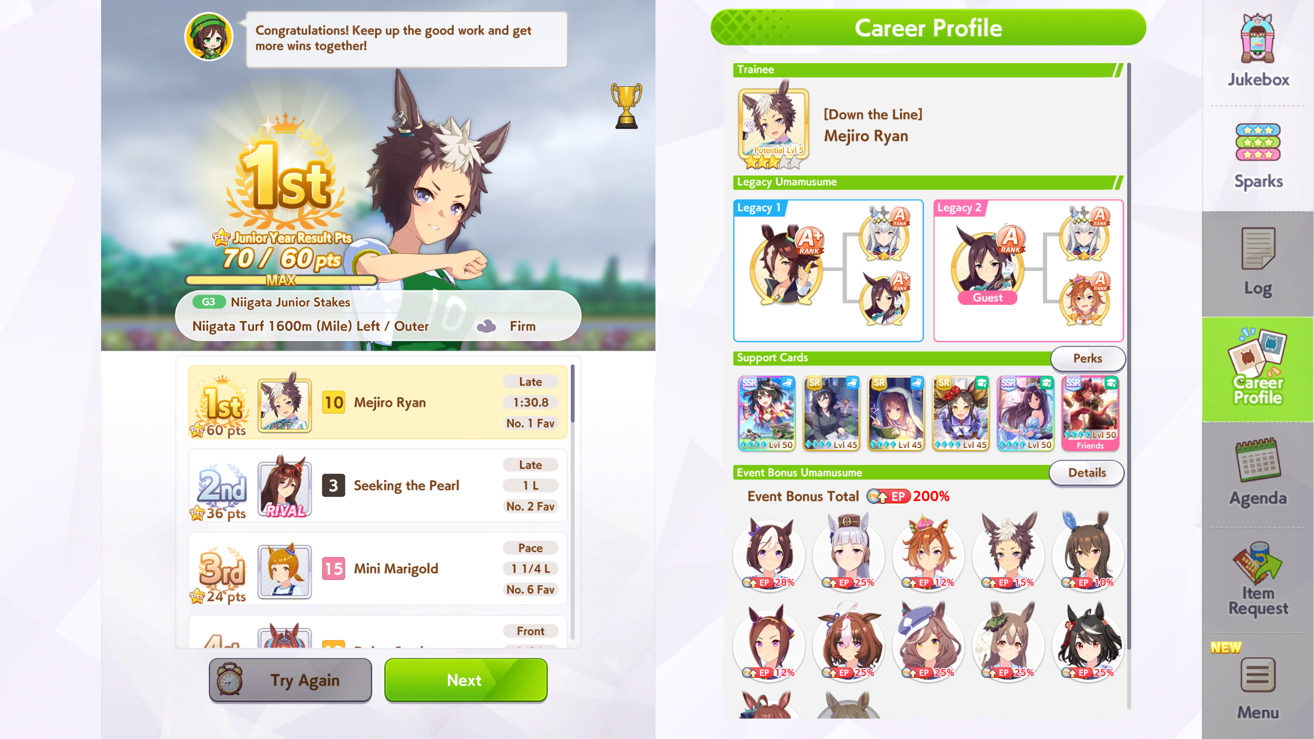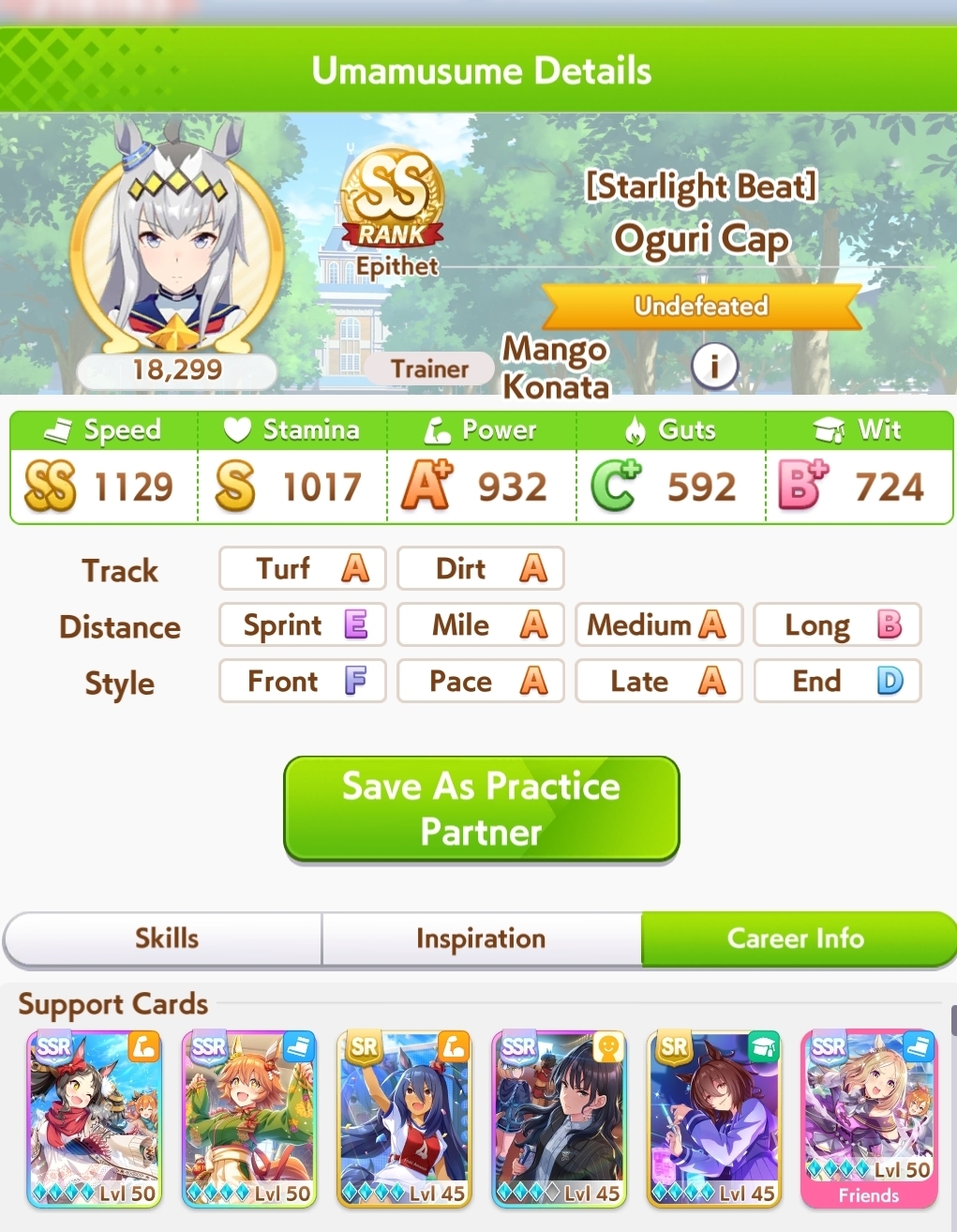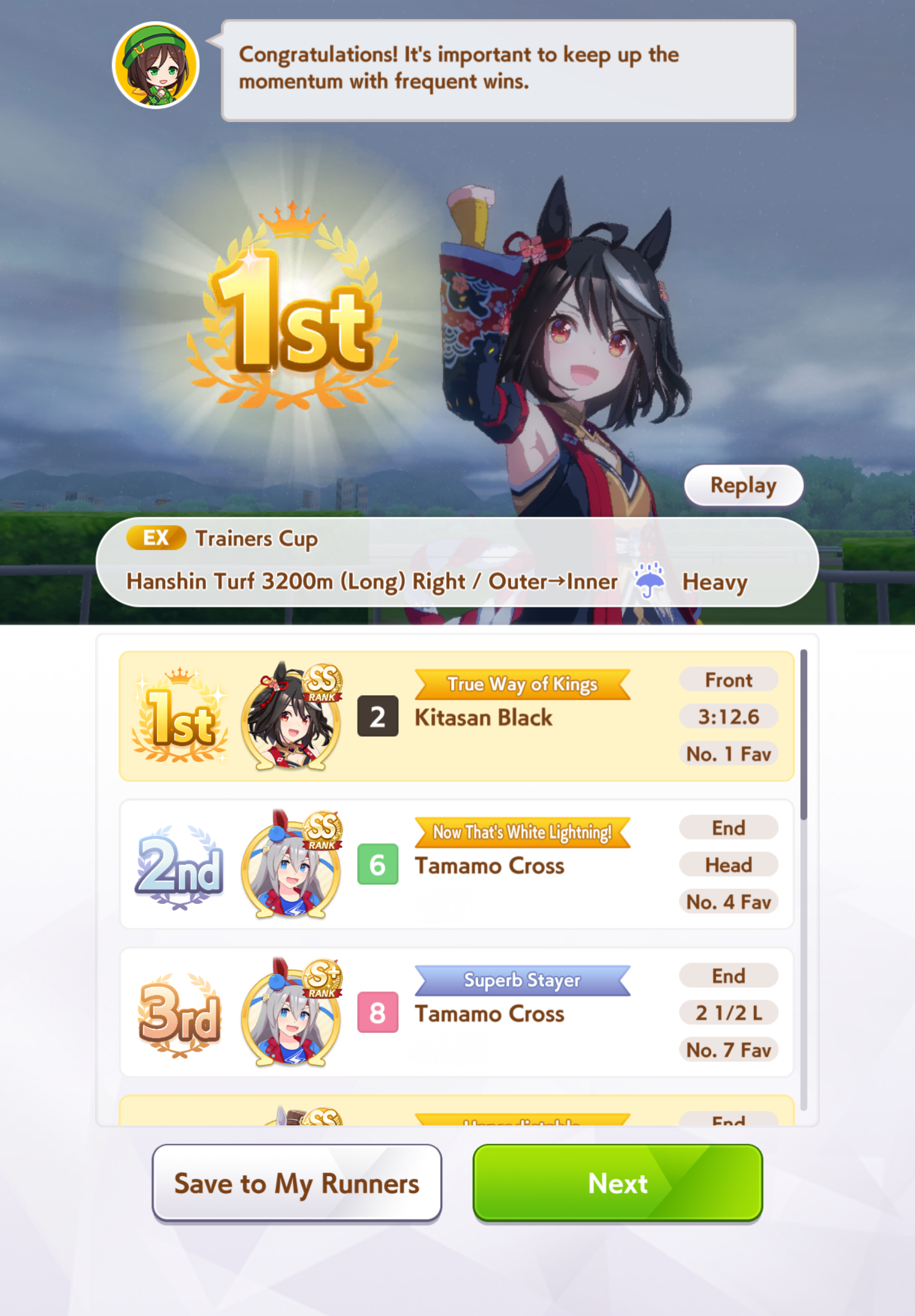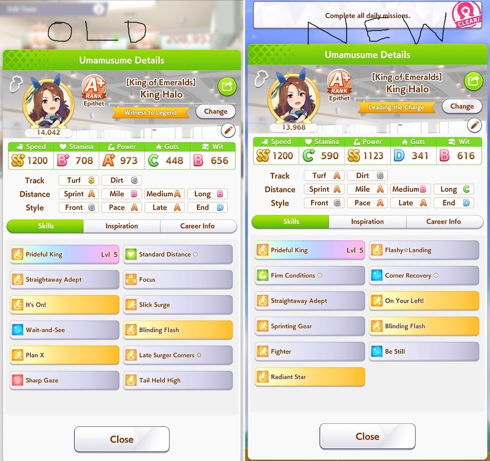 >spent all my clocks on takarazuka fucking kinen>still lose a few more g1s in senior year>speed and power not capped>awful run overall>S+ rank.I swear to god I had Unity careers where the whole runs felt like highrolls infused with dopamine and then end up with a subpar 12k A+ rank, it's incredible how MANT is the inverse of that if you know how to play its ball.deck was SSRs urara and yukino guts, SR groove guts, SRs marvey and tachyon wit, SSR fuku speed (borrow). all mlb