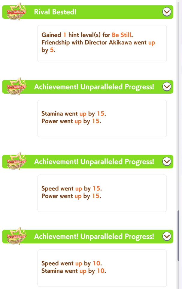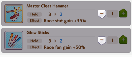 I get it now. You spam races to earn money to buy items along with rival races to stock new items for the shop. Then stack items so you can snowball your stats during Summer training.