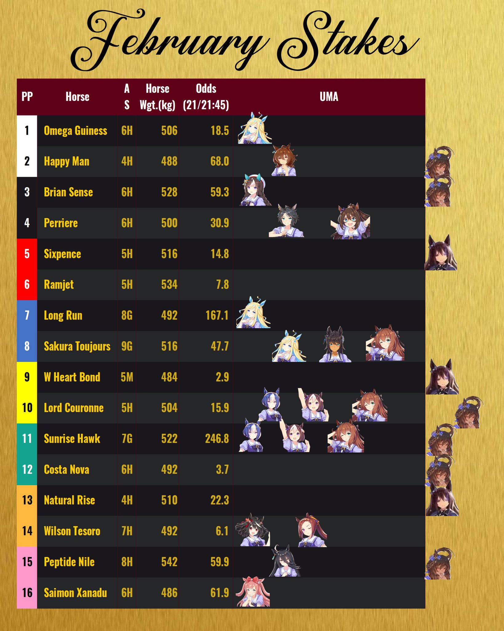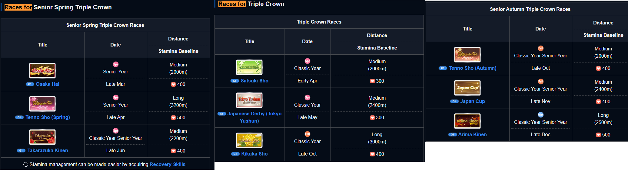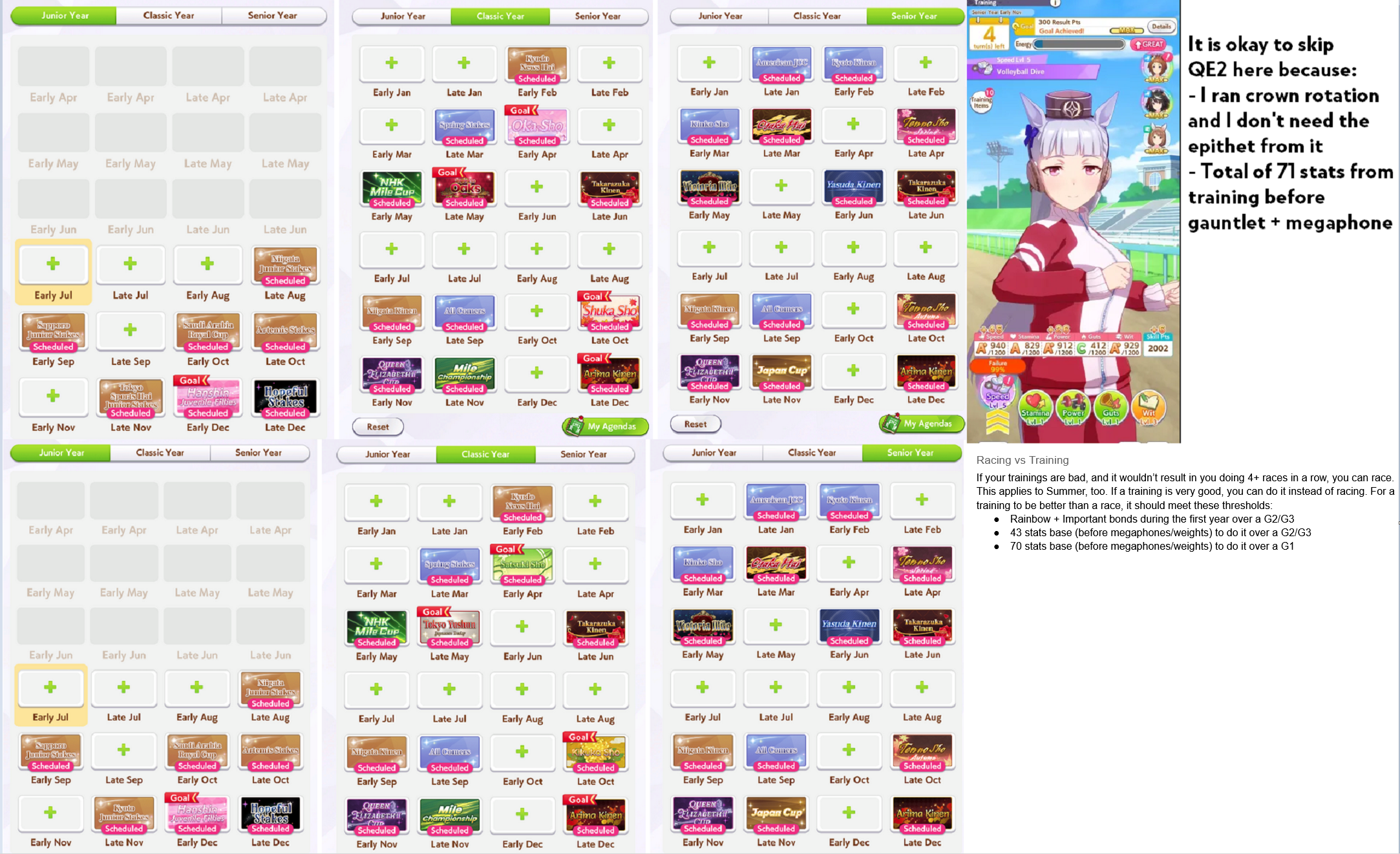 witGOD rushed his TS video and his race rotation is garbage, I found this jap site with every rotation possible for all distances, showing which umas can do which and the total of epithets and stats each one gives by the end. sadly it includes future dirt G1s but it's as easy as changing the first one to Hopeful Stakes and ignoring the othershttps://game8.jp/umamusume/450869