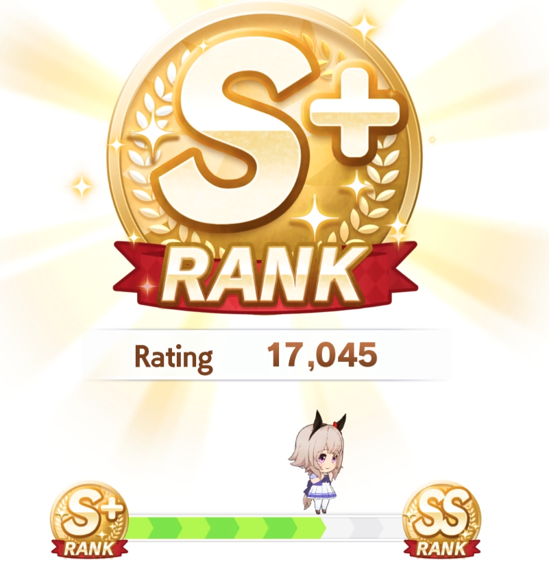 >>560413653S+ will be the floor, the gap between S+ and SS will be mainly wit and skills . people having fun with S rank for the first time are about to suffer with training for long CM