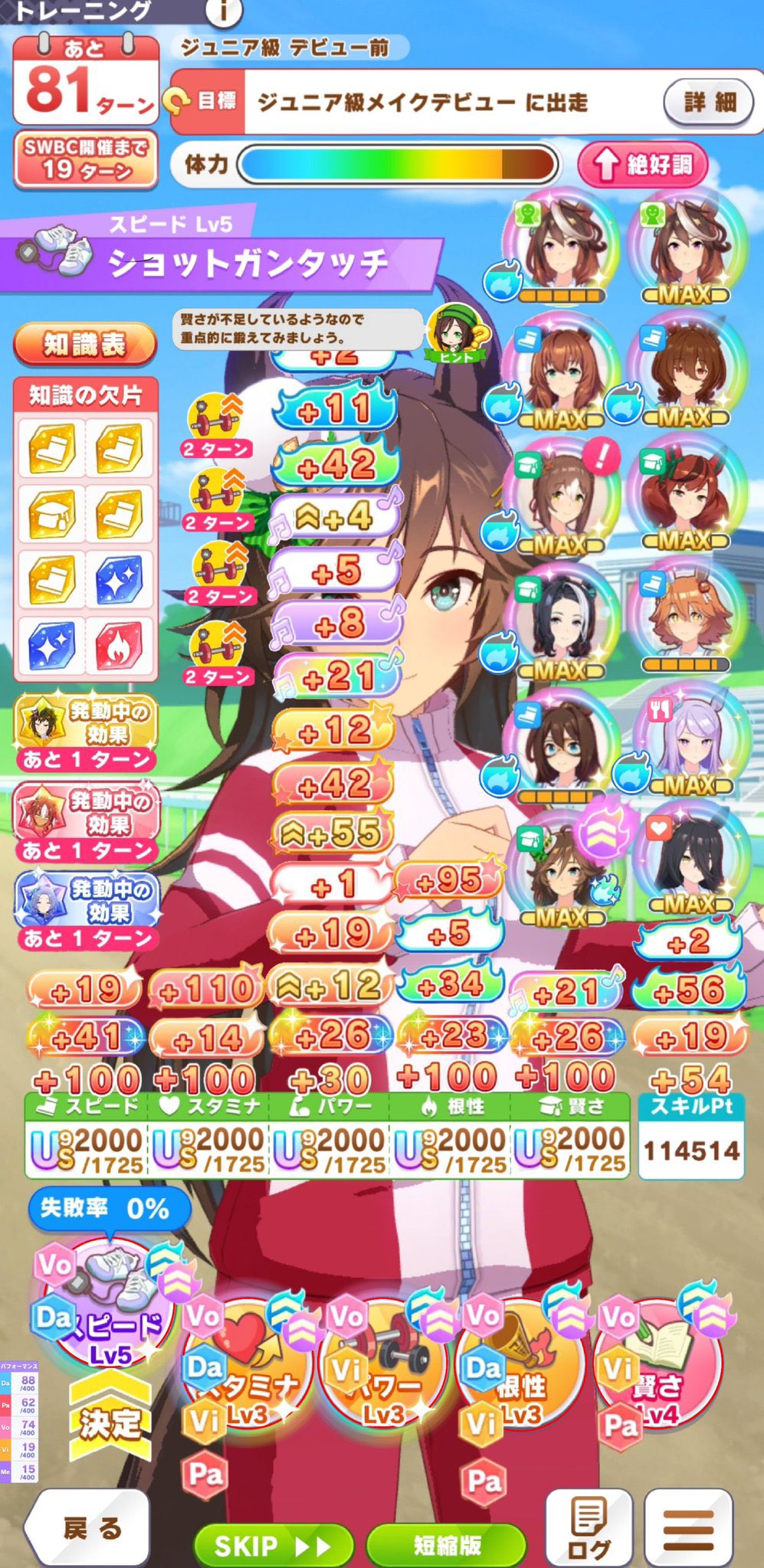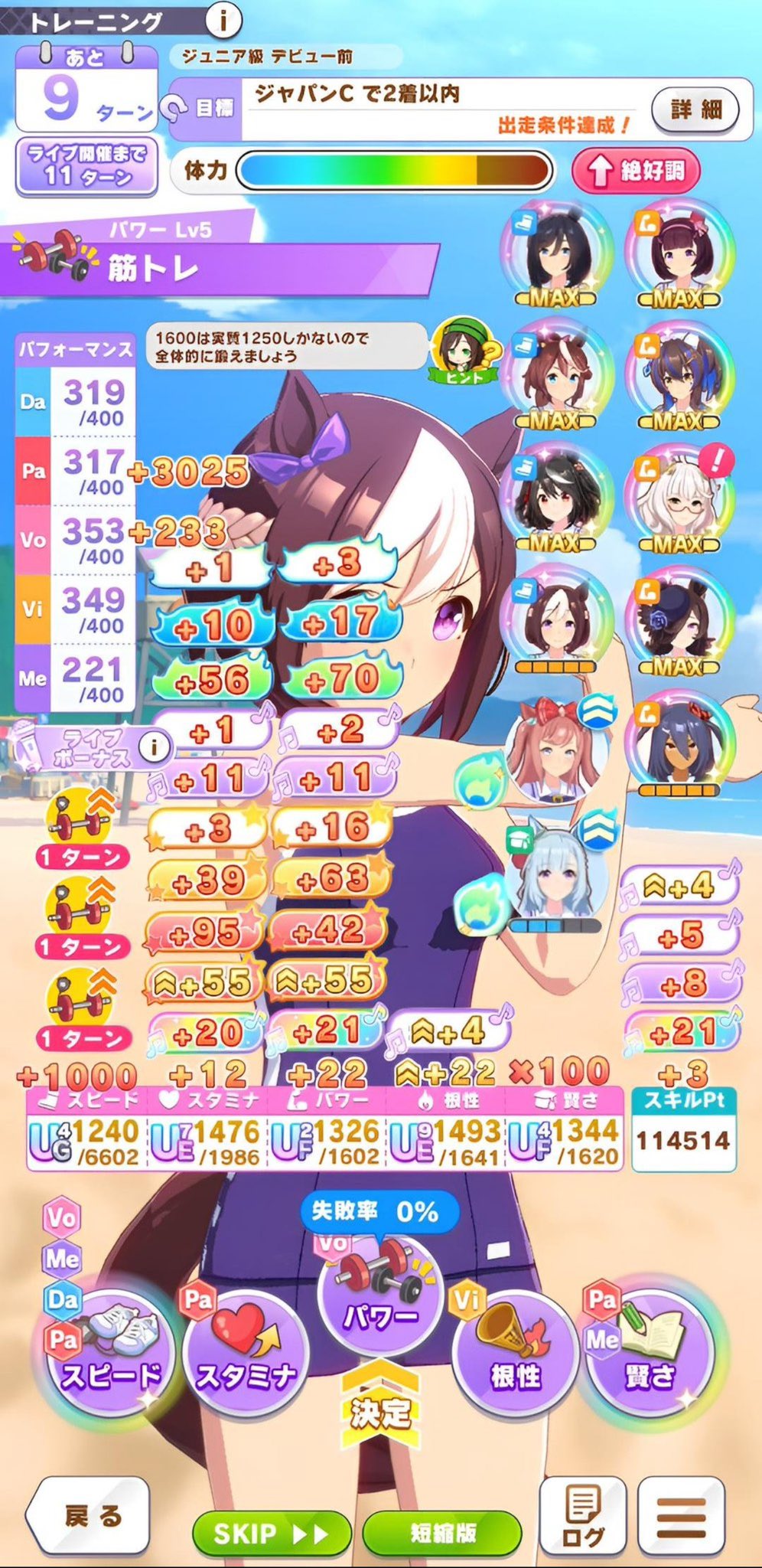 >>560411318I loaded up the tiara route and did the usual miles, along with Oka Sho + Sprinters Stakes and Takamatsunomiya Kinen, and replaced medium G2/G3s with sprintsThis is my first time running a sprinter in MANTblazer so I winged it a bit. I'll try doing a full tiara route with C medium later