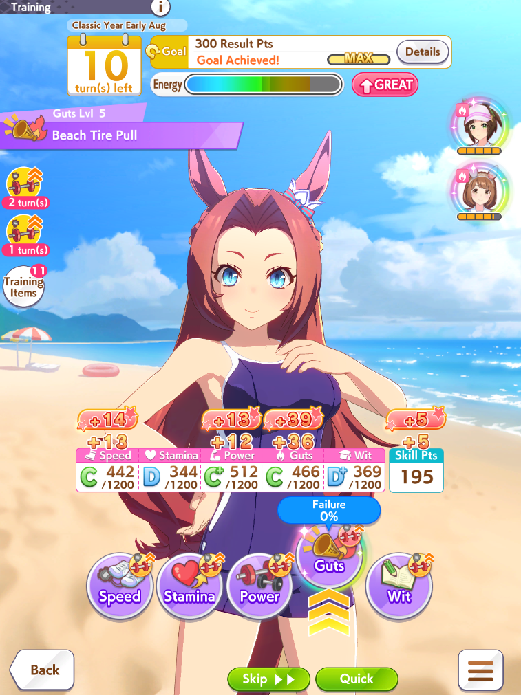 >>560400810>Then stack items so you can snowball your stats during Summer training.You're allowed to skip non-g1 races if the stats are good enough. You're also allowed to race if the summer is bad.