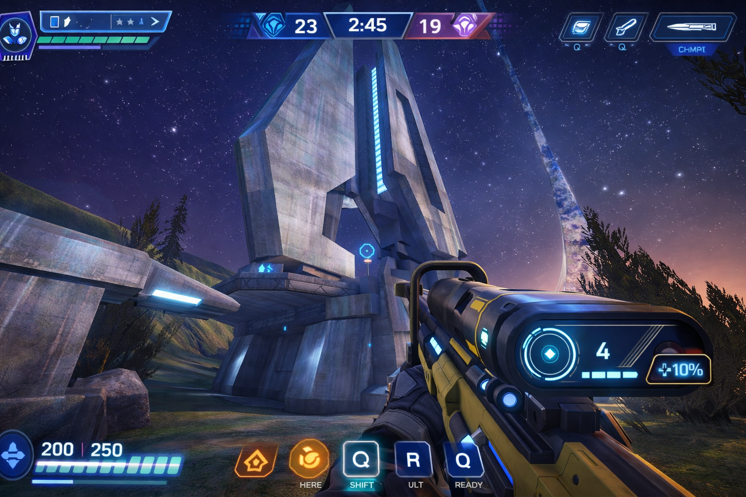 >Classic Halo: (Or as close as you can get to it...)-MATCH-RESPAWN DELAY = 5s-SANDBOX-PRIMARY WEAPON = BR75SECONDARY WEAPON = NoneEQUIPMENT PADS/PLACEMENTS = Off-HUD-MOTION TRACKER INNER-RING SCALAR = 120%ENEMY PLAYER OUTLINES = OffENEMY VEHICLE OUTLINES = Off-HEALTH & DAMAGE-FRIENDLY FIRE = On-MOVEMENT-FRIENDLY PLAYER COLLISION = OnMOVEMENT SPEED SCALAR = 90%GRAVITY SCALAR = 90%FORWARD/BACK ACCELERATION SCALAR = 50%STRAFE ACCELERATION SCALAR = 50%SPRINTING = OffJUMP HEIGHT SCALAR = 120%CLAMBERING = Off-BOTS-BOT DIFFICULTY = ODSTBOT COUNT [TEAM 1: EAGLE] = 3BOT COUNT [TEAM 2: COBRA] = 4(BONUS)*Optional primary weapons: MA40 AR, M392 Bandit**Optional secondary weapons: MA40 AR, M392 Bandit, Mk50 Sidekick, Plasma Pistol***Optional Bot difficulty: Spartan