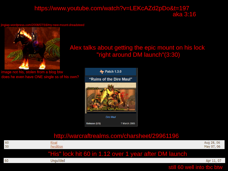 >>560894808Why are you fags obsessed over Alex? He's a 4'11" manlet and I'll never forget watching his sweaty ass level in 2019 so fast on a Hunter and then join a popular parsing guild. He's literal the person he hates. However he makes good points about classic players even though he has the same toxic mentality. That's all I know about Alex. He had some private server youtube videos in 2019 that I watched before classic. Surprised He's still even streaming.