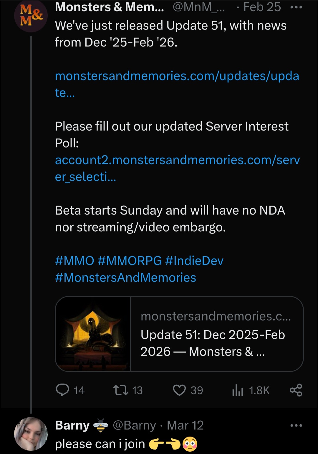 https://www.reddit.com/r/MonstersAndMemories/comments/1rtya8m/streamer_bails_on_dungeon_group_midrun/