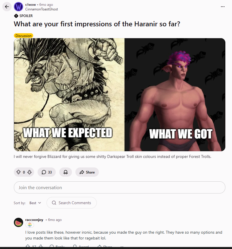 >>560858208choosing a race purely on their competitive nature will do that, it's the reason gnome players are either very nice or total cunts.