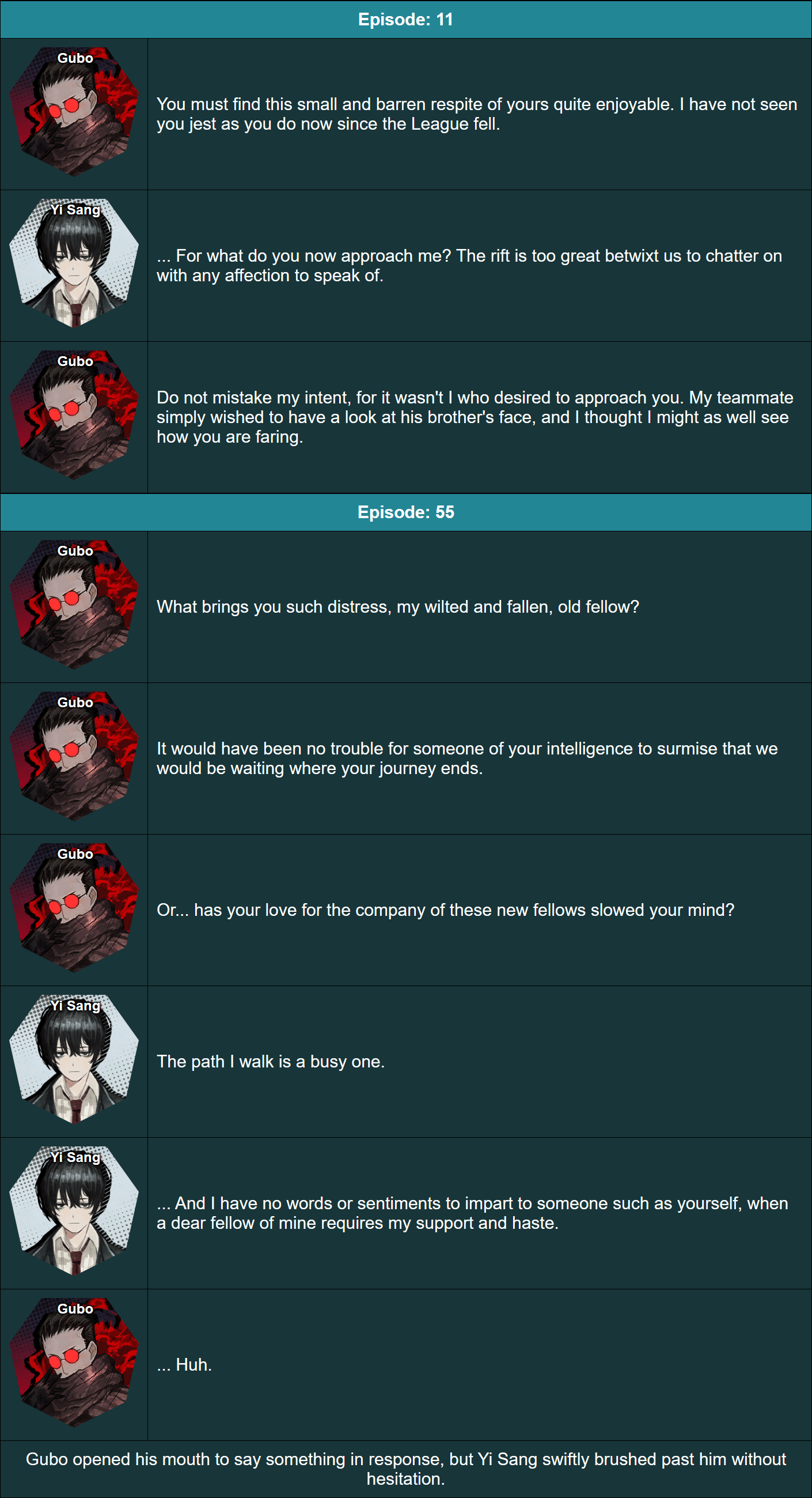 >>560500665To clarify even further because I'm bored and have literally nothing better to do, The Jade Qilin constantly referred to is 옥기린 in Korean, while all other color titles consistently have four characters such as>The Red Mist붉은안개 >The Red Gaze붉은시선 >The Indigo Elder쪽빛노인So yeah, I assume the Jade Qilin is just the nickname of the Star (again like Tianjiu Star, the Unrestrained or Tiantui Star, the Winged Tiger)