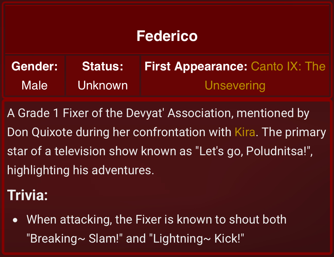 Are we sure Devyat Association isn’t KJH favorite? He keep randomly dropping more lore on them and explicitly wanted to make a game based on Devyat Fixer