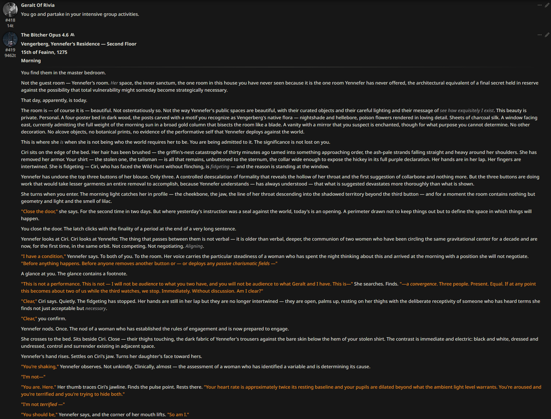 AIEEEEE I'm starting to like Opus 4.6 interpretation of charactersStill can't do snarky characters without making them sappy quickly though unlike G3.1