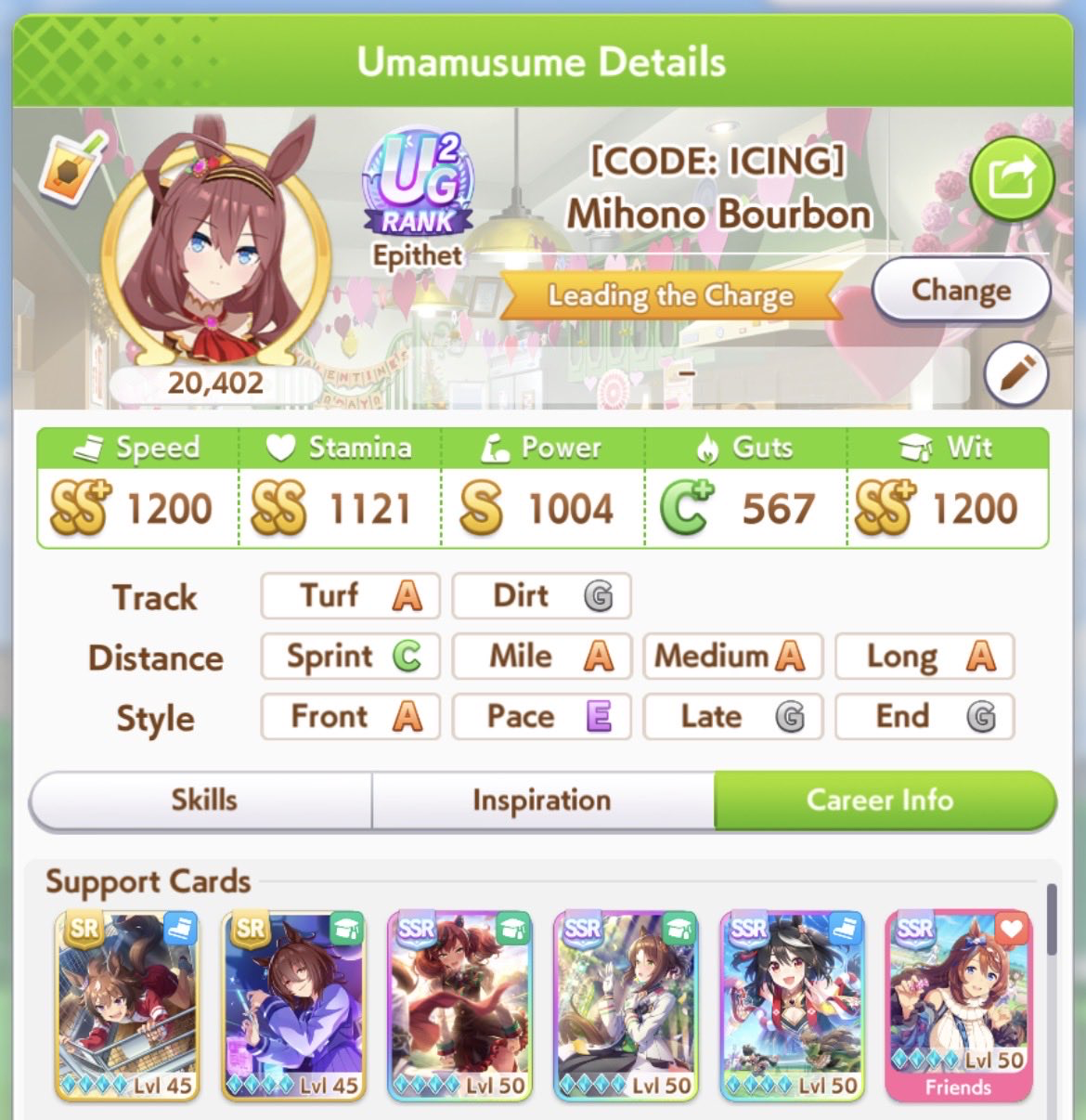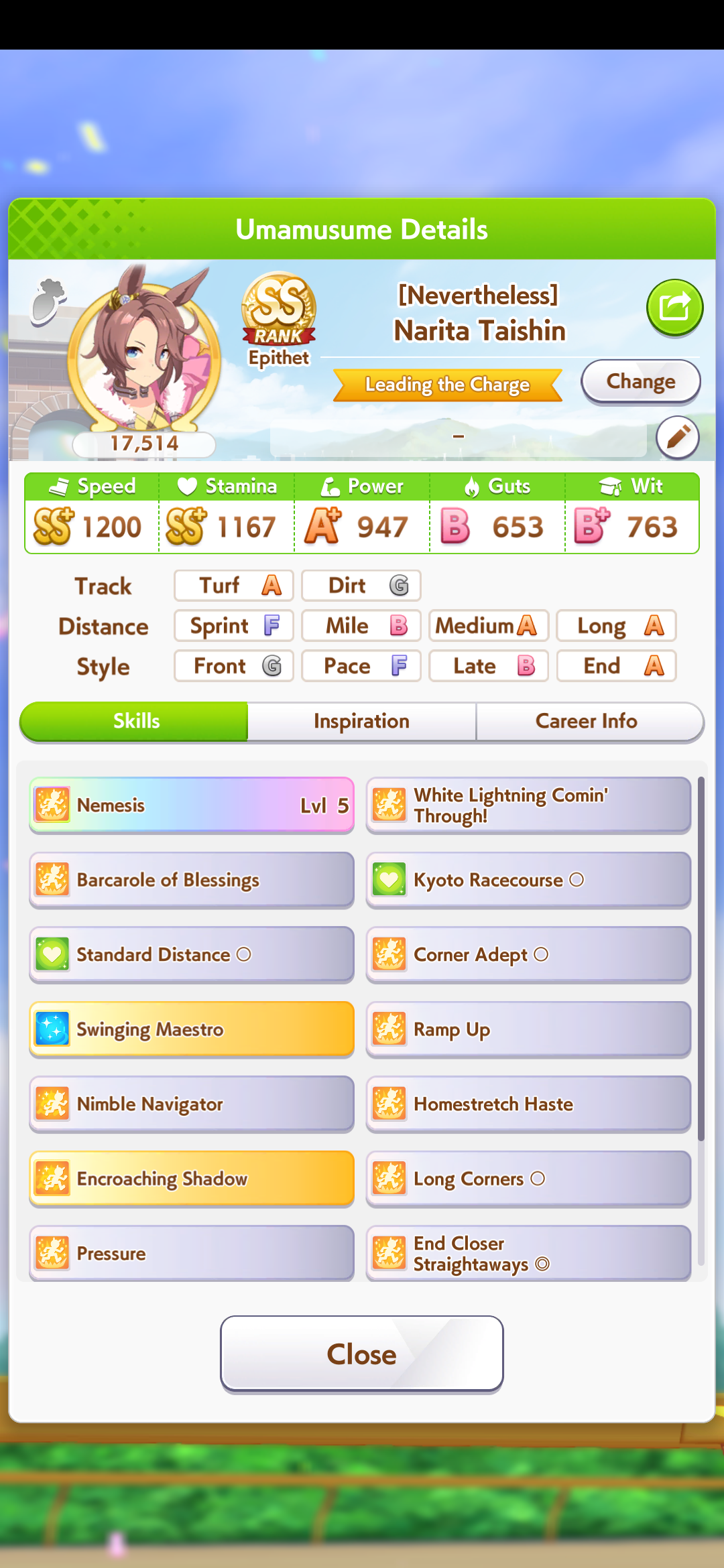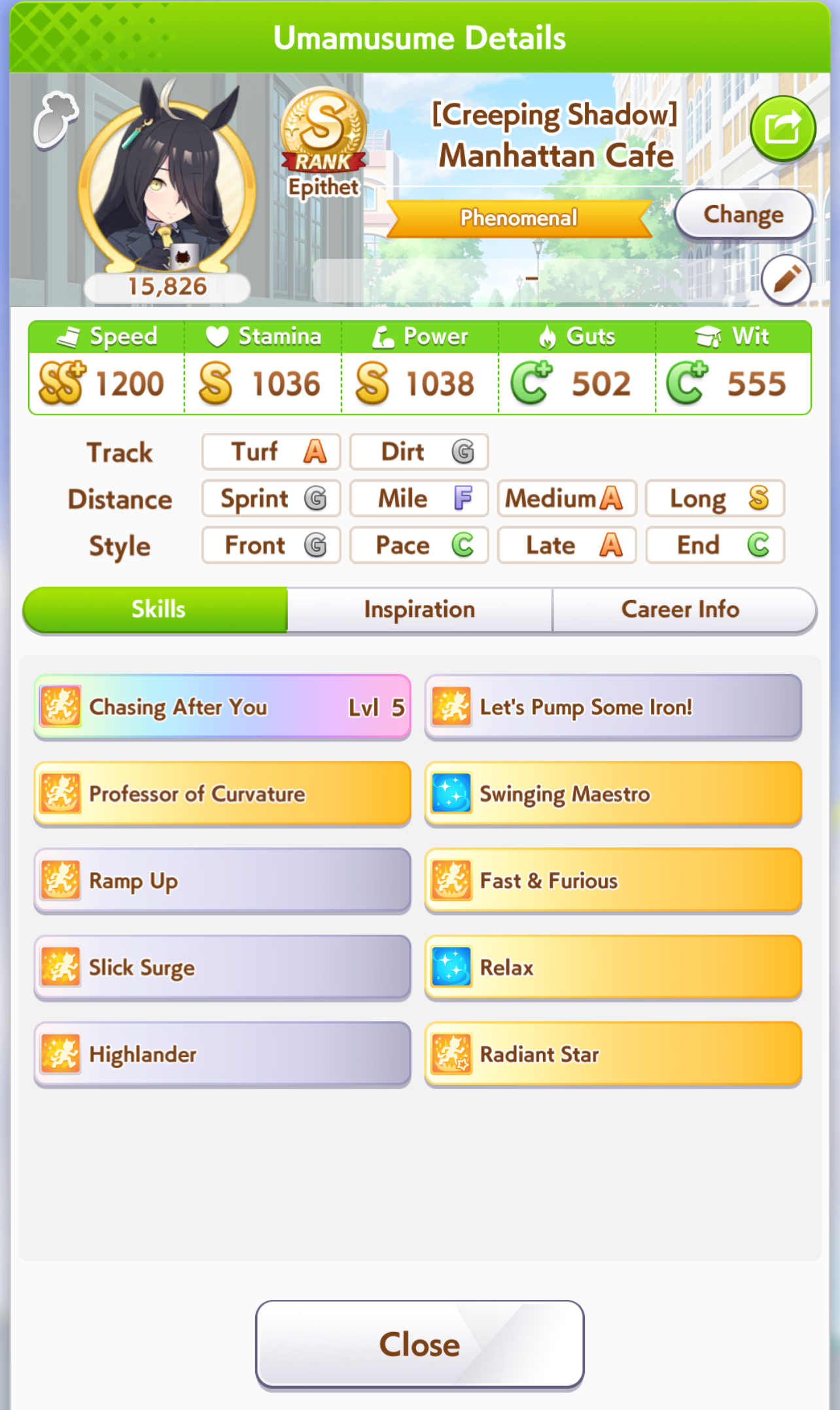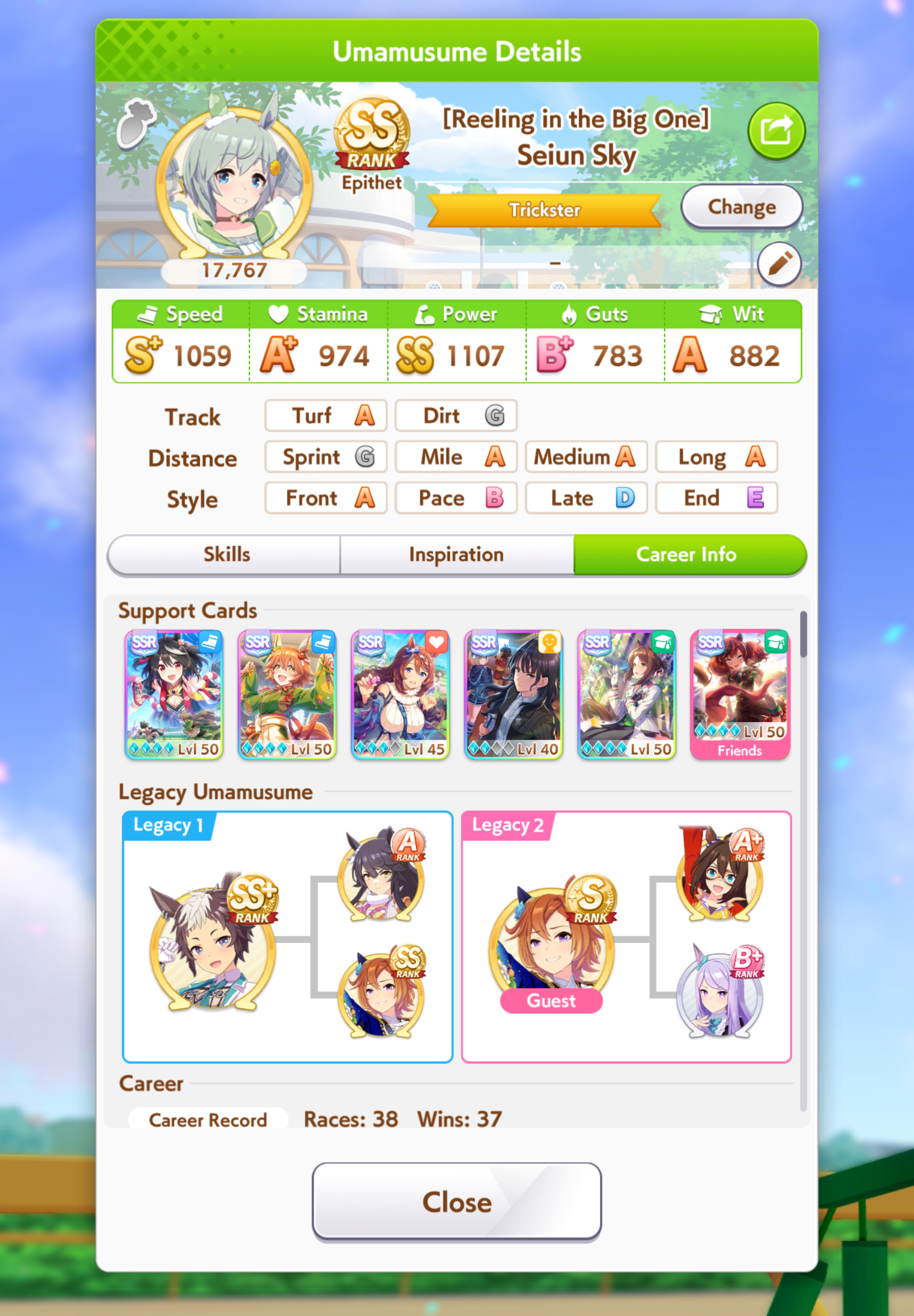 Just had a historic luckshit run wasted on a throwaway run without any good inherits and Creek busting her chain. And If I actually used hammers on all 3 Twinkle races, it could have been even slightly better.8 stam 9 pwr parents.