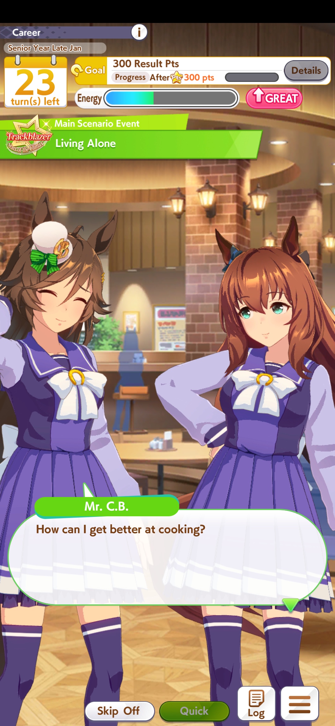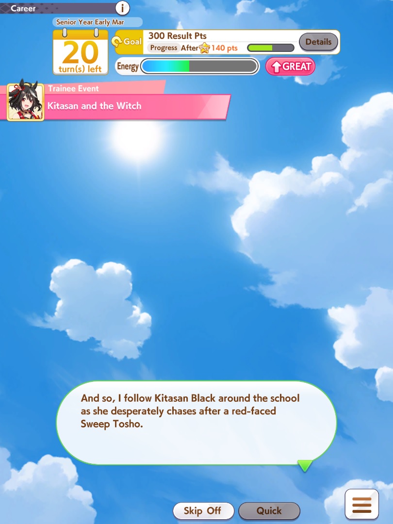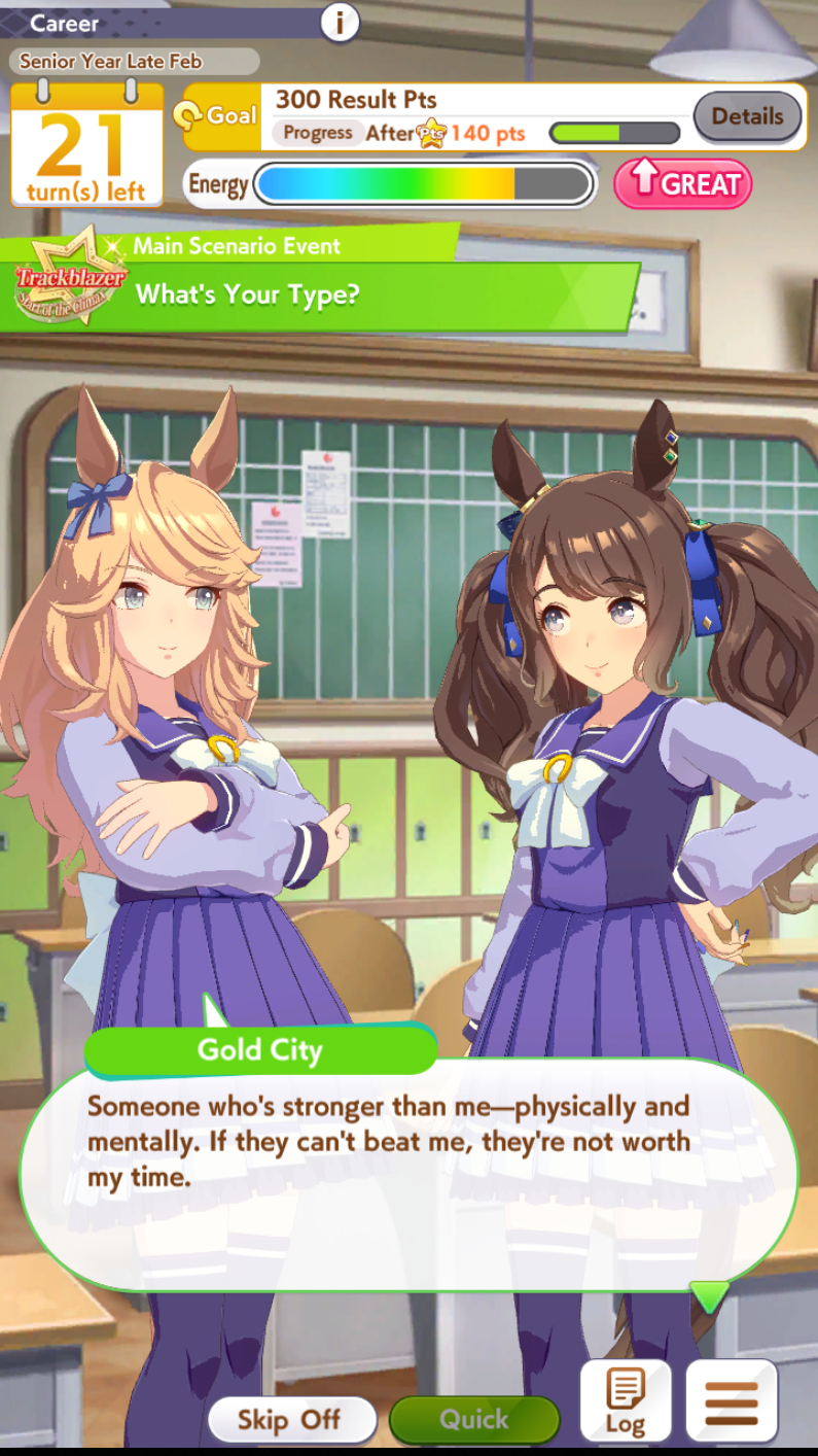 >>560505723I skip g2/g3s when 3 or more umas appear on a training before summer