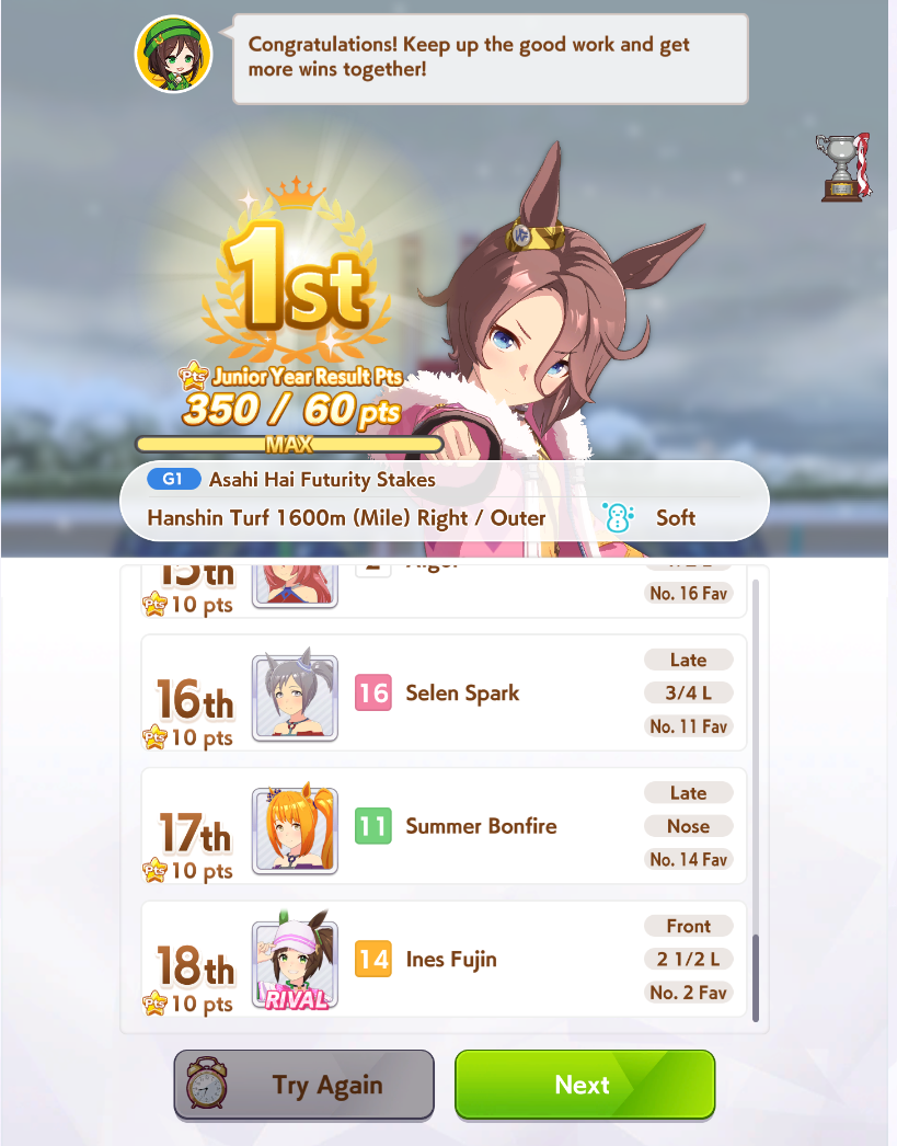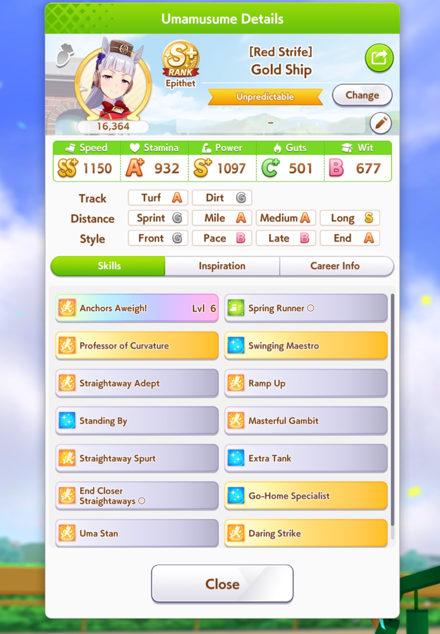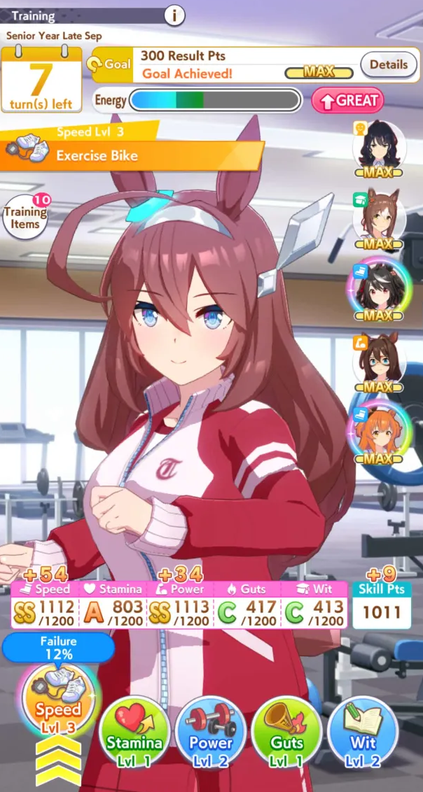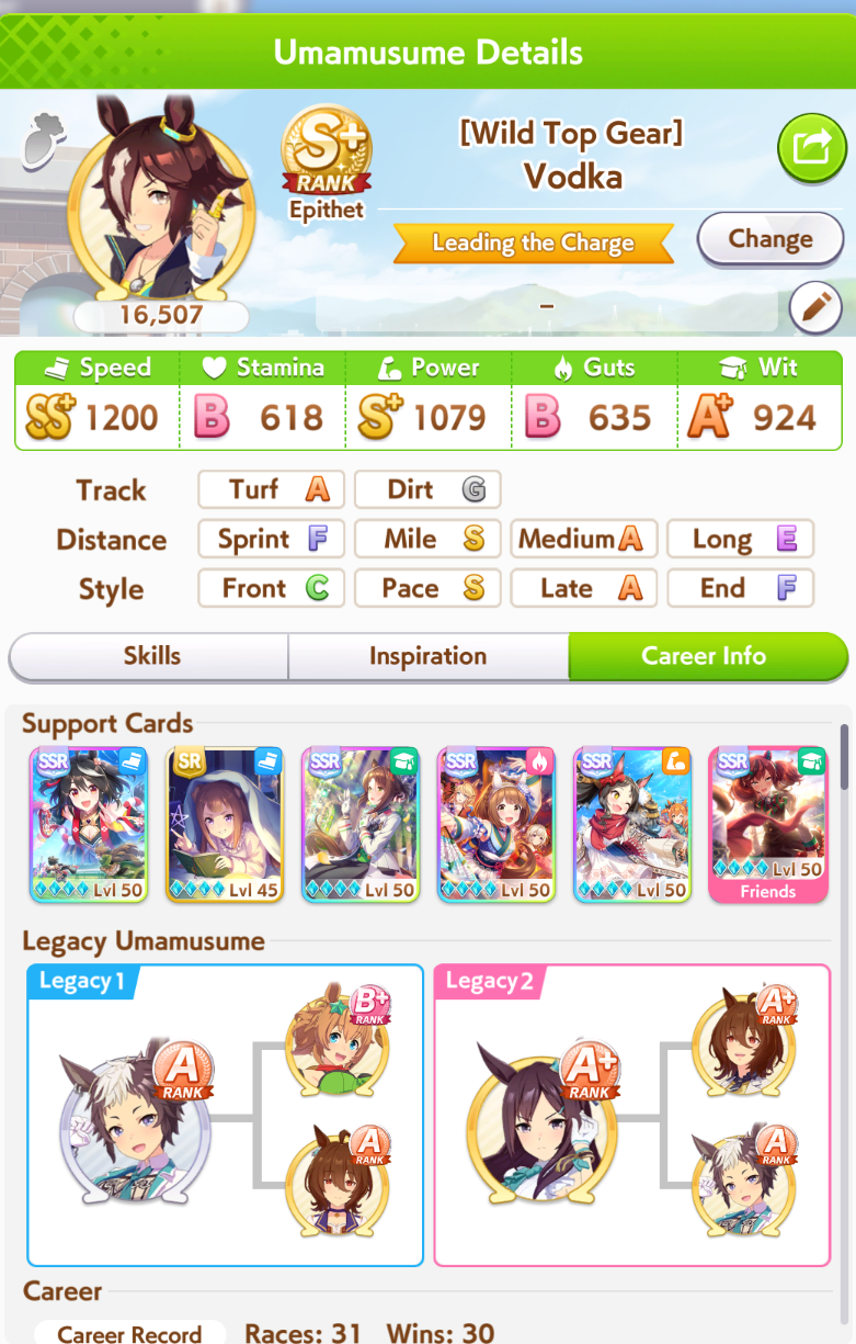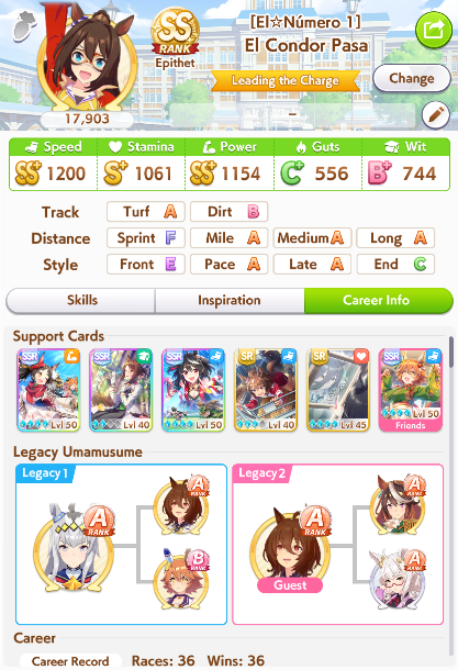 In Umamusume there are those who have wit parents and those who don't, I don't.>(FM didn't get to max friendship in the whole run and I missed like +5 wit by not clicking the golden hammer, glue)