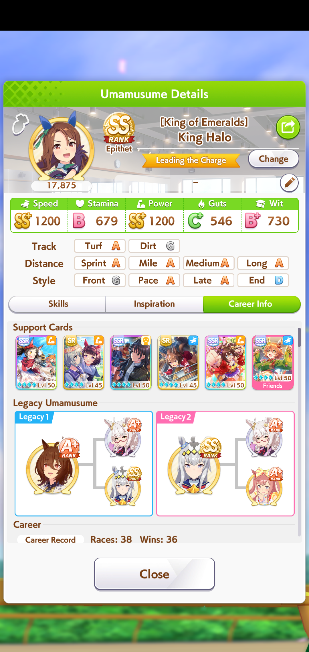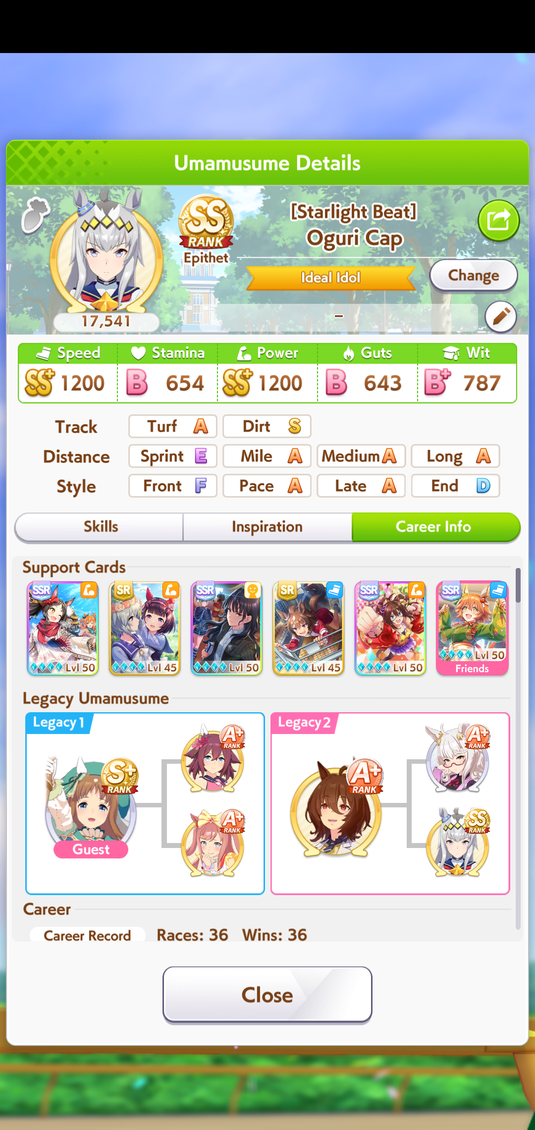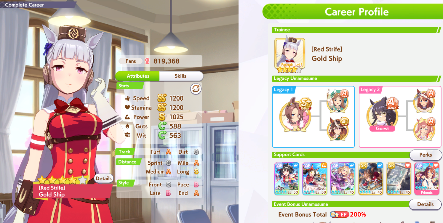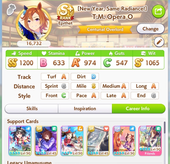 In Umamusume there are those who have wit parents and those who don't, I don't.>(FM didn't get to max friendship in the whole run and I missed like +5 wit by not clicking the golden hammer, glue)