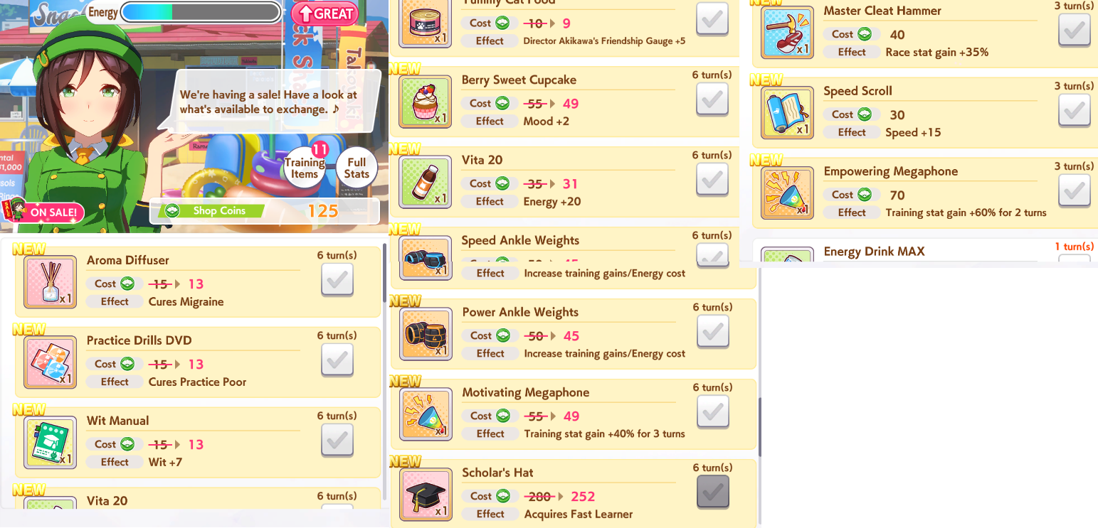 >Awful mood>New items are added to the shop>cupcake +2>go to shop>The shop's lineup has been refreshed!