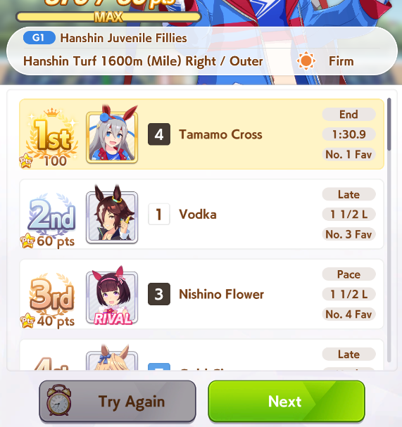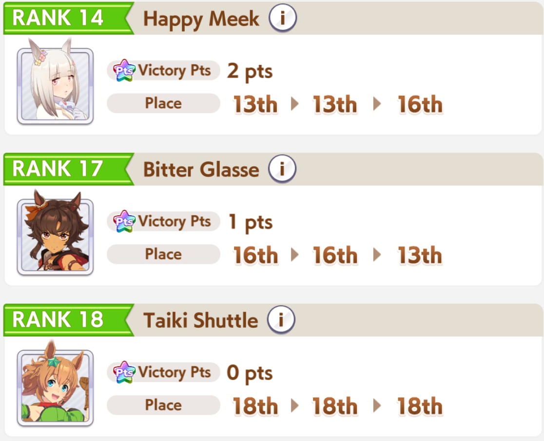 >updated my TT team>no reason to continue playing until free card rolls endSo this is how the fun ends I have nothing else to do in uma until then...