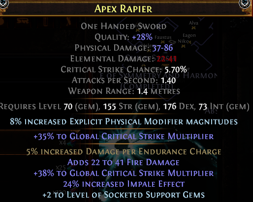 >>560510741Well that sucks, thanks for replying. Big pain to theorycraft when the modifiers aren't actually searchable inside PoB, I don't have a clue about 80% of the foulborn mods available