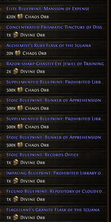 SELL ALL CHAOS NOW DIVINES ARE FALLING BELOW 300C