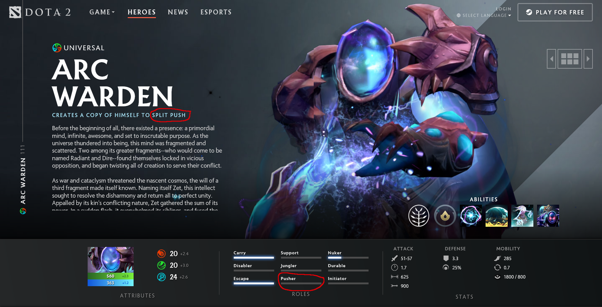 bros, what's the strongest hero in the lore? The last time I looked it up, a long time ago, it was Weaver, but I just checked and the consensus now seems to be Arc Warden. Speaking of whom, Dota doesn't list him as a pusher even though his description states he is lol.