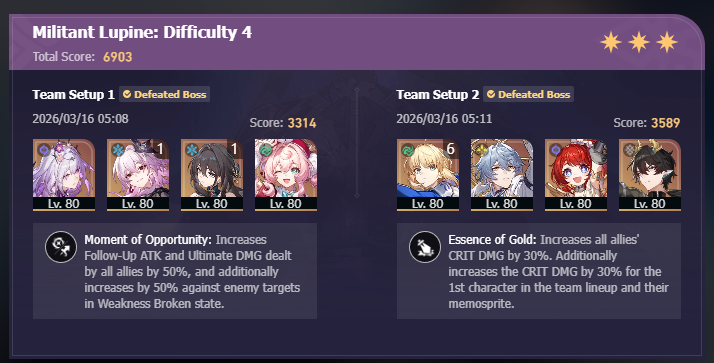 >>560521557Recent bosses can 1 shot teammates because fofo doesn't have dmg res or max hp buff Im in a nice spot where we are going to know fofo buffs before hyacinth goes away so I may or may not roll her to replace fofo on my cyrene, evernight, Agy team