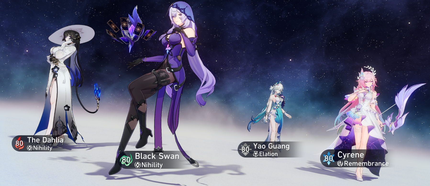 >SW999/Sparxie/EMC or Sparkle (Temporary or E2S1)/Huohuo or Sustain of Choicekind of a cursed team comp, but I like it...