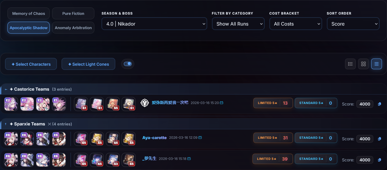 >>560544523Sparkle and RMC are free if you want to Hypercarry Anaxa, and Tribbie is a much more bang for buck support if you want to run him as a THerta sub.