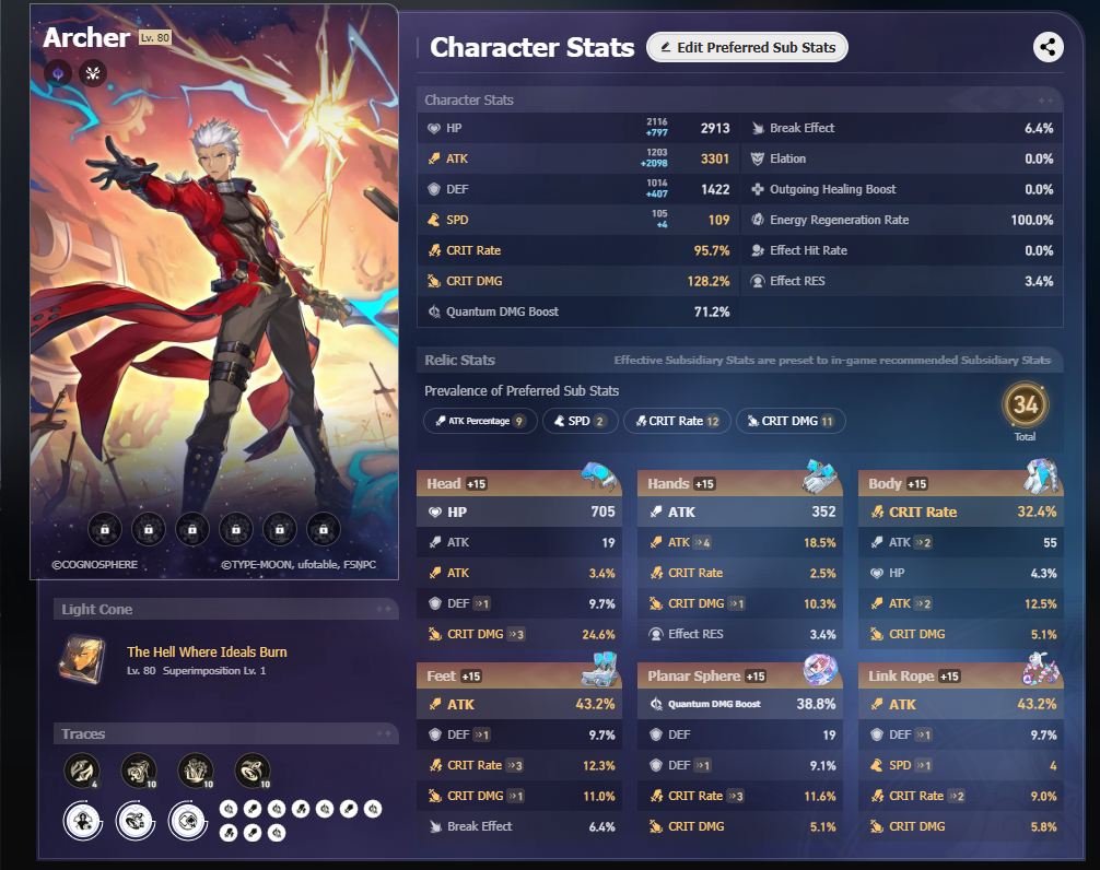 >>560542574>10% crit rate+30% crit damage from yao cone>10% crit rate+28% crit damage+self crit damage buffs from sparkle cone+sparkle>12% crit rate+30% crit damage from e1 fu xuanI should probably craft a crit damage chest for emiya...