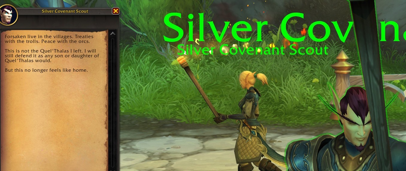 Fear not, good people of Quel'thalas. I am merely a humble unholy death knight with a small army of wretched undead monstrosities here to protect your sacred forest from the vile corruption of the light. Trust me.
