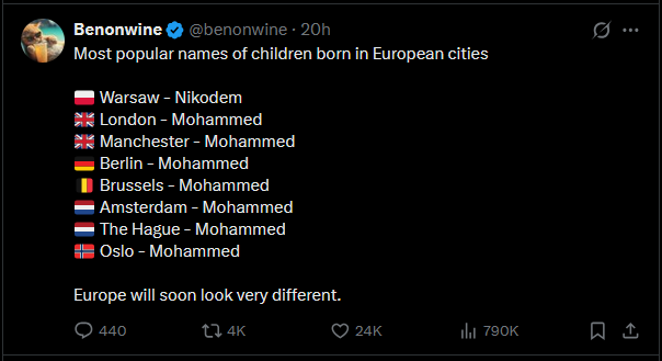 >>560563372muslims don't have much variety in given namesif 50% of white kids were called bob i can assure you that would be the most popular name instead