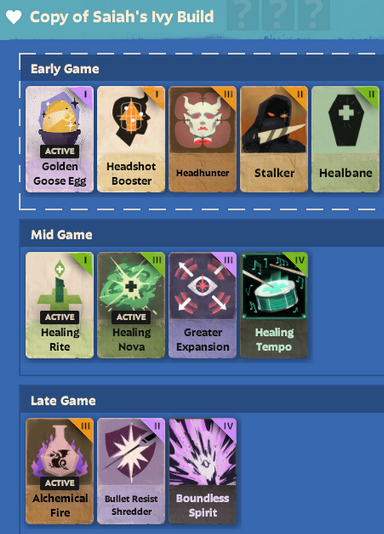 >Collection of useful character builds