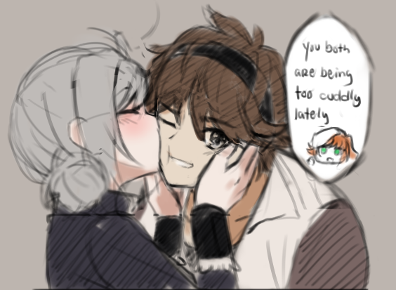 Hello, I came here because someone mentioned in /1999/ something about another thread so I got curious. The collage in >>560763279 is accurate; I think it's pretty obvious that's a lesbian couple, even if they don't strictly say it. They're from a character story from patch 2.6, which ran around April 2025. Since then we haven't seen something so blatant, for lack of a better term. There are no other same-sex relationships in the game, although a male NPC asked a male character to dance in a club once, so we can assume that NPC is also gay. Besides that I'd say it's a yuribait game, not a yuri game. I make the distinction because if you give Reverse: 1999 a chance thinking it's a game about lesbians, you'll be disappointed, so I think it's a bit irresponsible to warp potential players' expectations.With that said, please give our game a chance, it's very fun!>>560769997>why have I never seen any straight fanart from this game?It's not as rare as you think, see my pic related. If you haven't played the game itself, the boy in the right is Ring, a childhood friend of Vertin, the protagonist.>Why do only the women get all the artwork if there are apparently men in the game?There is plenty of fanart of male characters.