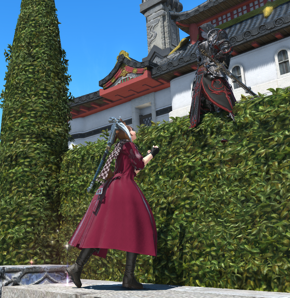 >hate the cramped crowded spaces of limsa and uldah>teleporting around for places to idle in>wow i really like the high perches on the castle walls of The Lochs looking down at the zone>feel safe and secure>realize I'm acting like a fucking cat >it is pretty comfy tho