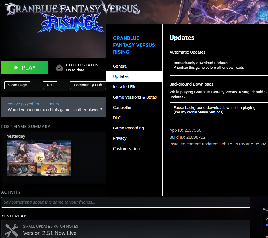 Enhanced Ilsa character guide:https://youtu.be/jXEkdOURD5wPatch noteshttps://rising.granbluefantasy.jp/en/news/detail/?id=ulceuzl6t>/gbvsg/ Tournament VODshttps://rentry.co/du3onotehttps://www.youtube.com/@grumblebumble69/--->(Un)official /gbvsg/ PC lobbyTo join, turn Crossplay off in System settings so that you're able to join Platform lobbies.Then you can join the (un)Official /gbvsg/ PC lobby at Japan Platform Lobby 1. Image version of joining instructions https://imgur.com/bCHqtDLPlaystation players cannot join the lobby, use a room if needed instead.>(un)Official /gbvsg/ RoomsUsually has "gbvsg" as password (check thread). f2players cannot join so ask people to join the lobby instead.>Gawdlike character guides (secret techniques!) for Yuel, Vikala, Narmaya, Galleon and Wilnas, by yours truly Anon!https://youtube.com/playlist?list=PLjG9OYMNRivtA_KWepE_aFmhGOJc2zETR&si=MqZagR-IO8ue8gxQ>This week's F2P rotationGran, Djeeta, Katalina, Beatrix>Steam pagehttps://store.steampowered.com/app/2157560/Granblue_Fantasy_Versus_Rising/>Websitehttps://rising.granbluefantasy.jp/en/>Resources:https://www.dustloop.com/w/GBVSR>Twitter hashtagshttps://x.com/YamicornDMV/status/1709222479061745711>Match replayshttps://replaytheater.app/?game=gbvs>Graphic Enhancements for PChttps://steamcommunity.com/sharedfiles/filedetails/?id=3117157142>Enable sound while the game runs in the backgroundhttps://steamcommunity.com/app/2157560/discussions/0/4041481833167877002/>Remove Figure Mode censorship/black voidhttps://gamebanana.com/mods/484409Last Bread: >>560347049