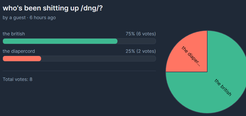 >>560660752Are you that incapable of using /pol/ or that friendless nobody fuck with you outside of dng?