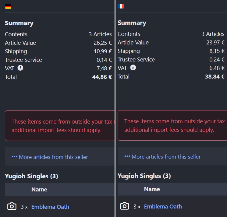 >>560644264Shipping + Vat usually makes it not worth it, unfortunately. Sometimes you get lucky and get oversea sellers who have reasonable shipping costs and no VAT but that's getting rarer and rarer.