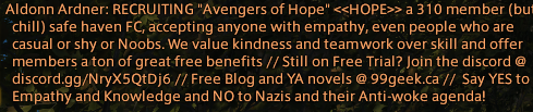 >>560586963Gives me a way to hang out and chat with people that doesn't involve tard wrangling on discord, or going through the endless loop of "I'd invite my friends to do stuff but they're already on xiv, and their friends are on xiv, and their friends friends are on xiv"