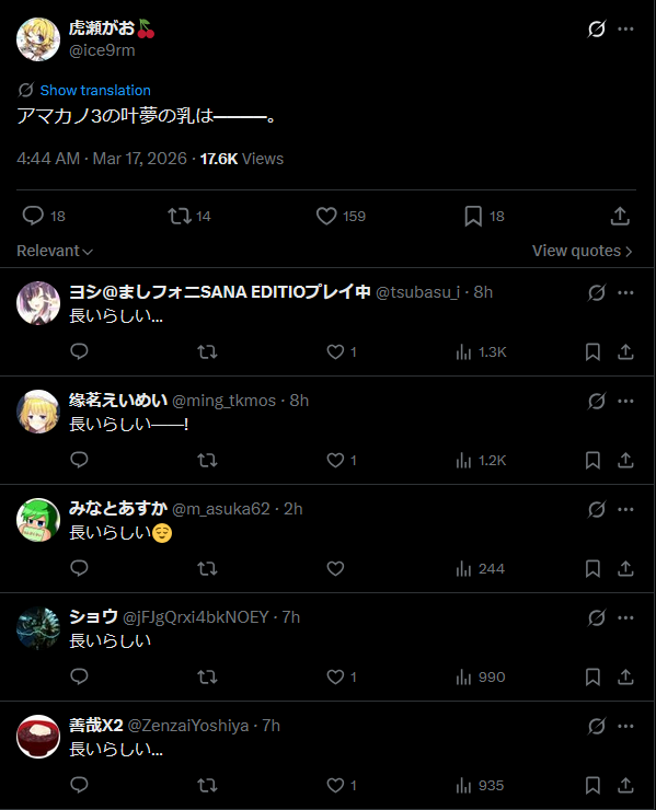 https://x.com/Onimushi/status/2033865932876177828I'm ready.
