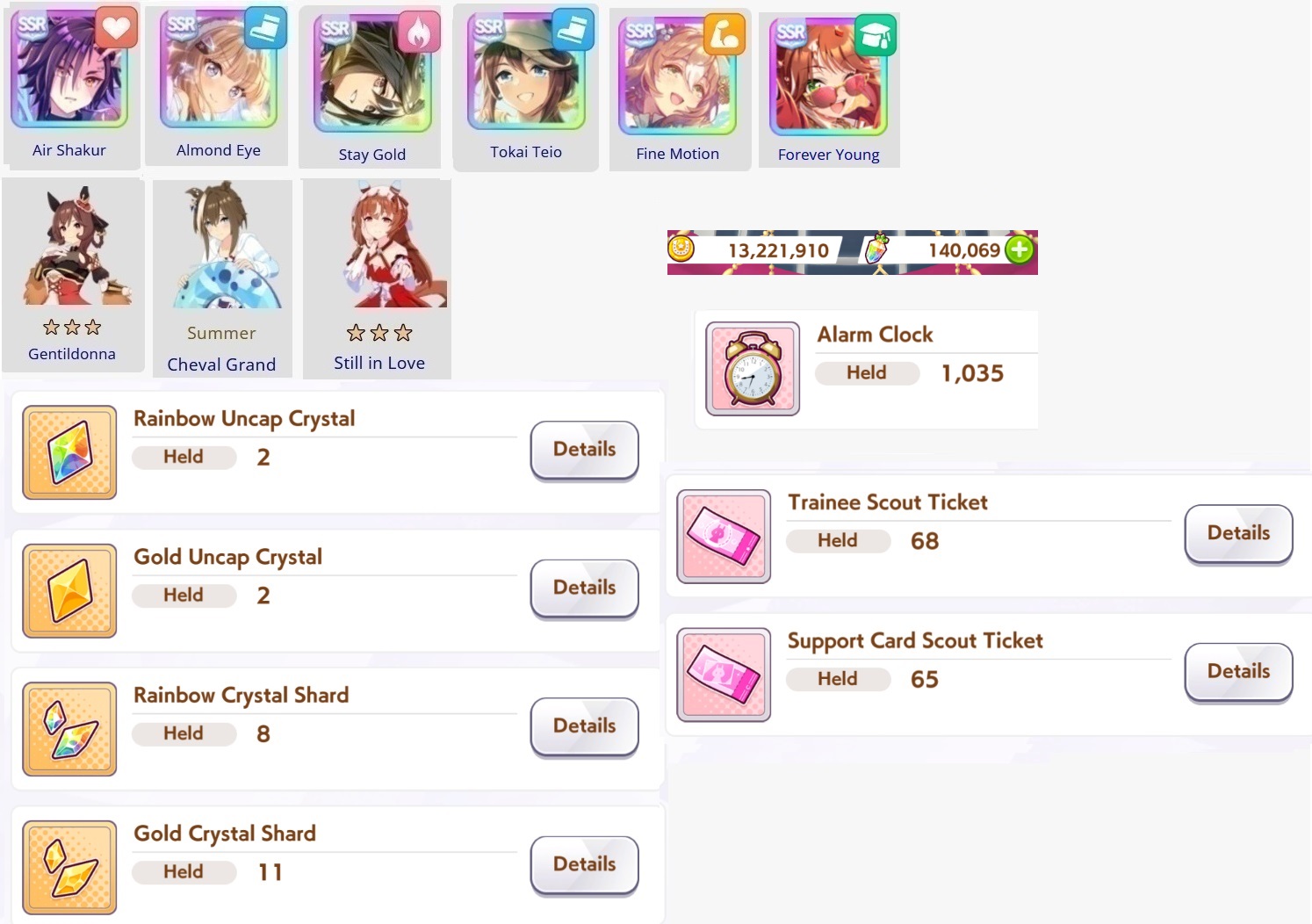 03/05 - Admire Vega (3*), Kawakami Princess (SSR), Fine Motion (SSR)