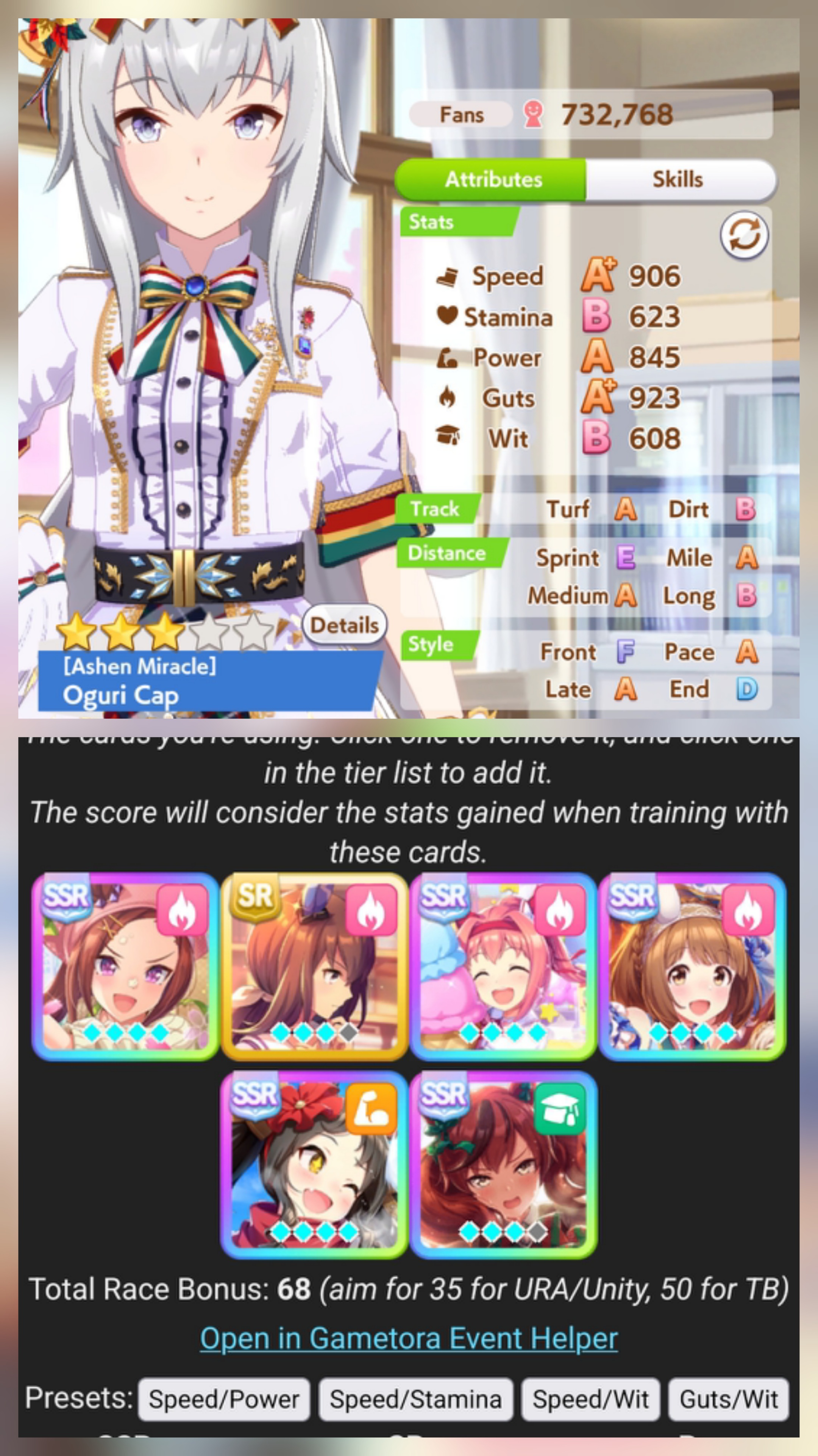 Spurt + NSM + any late race velocity is the way to go (pulse, barcarole, emperor, shadowbreak)