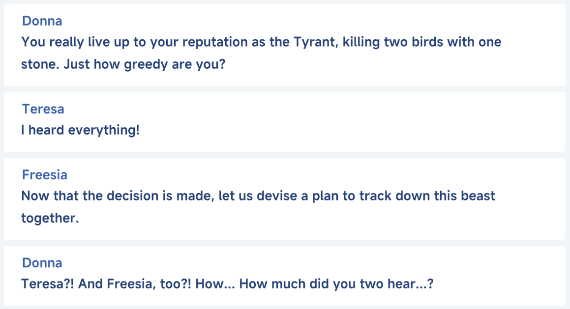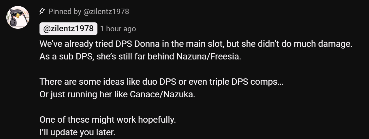 Big problem with Donna is that both Teresa and Freesia were designed with vanguard Donna/Cheeto aa focus in mind, and then they made her a backline skill damage dealer, and they can barely support that.