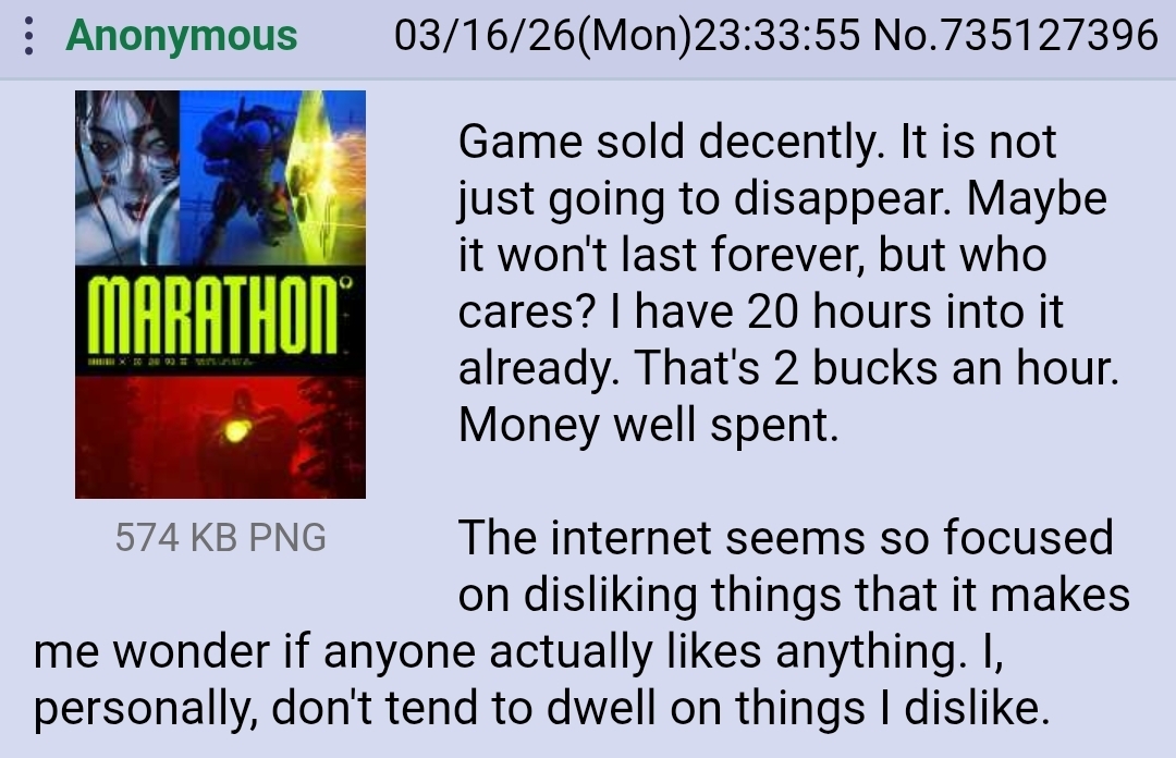 >>560785883I don't even know why considering marathon has worse scores